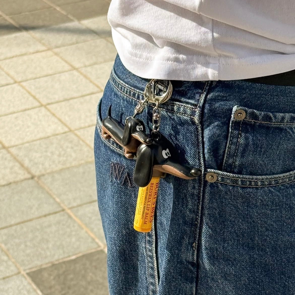 かわいいダックスフンドのリップスリームケースキーホルダー。