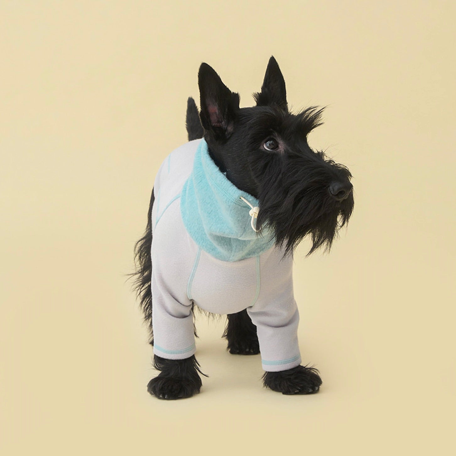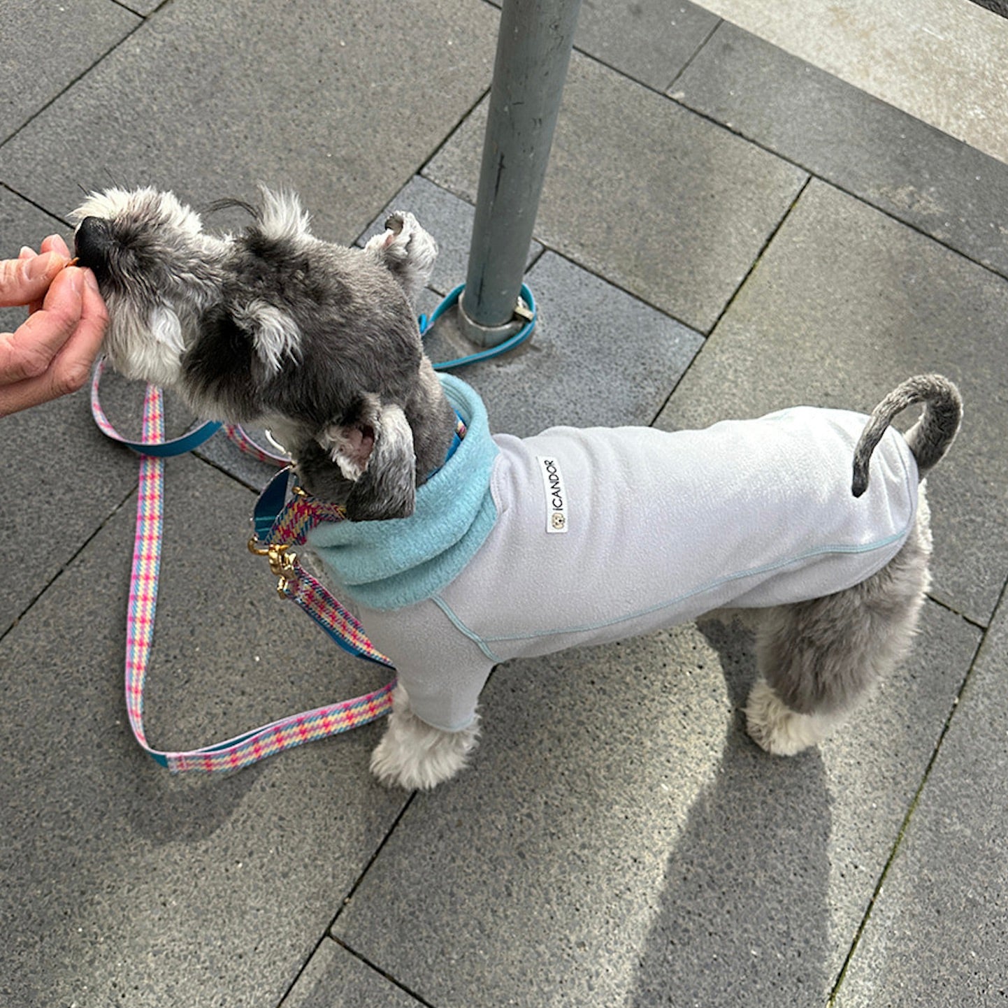洋服の中に着用した首輪とリードを繋ぐための穴もあるので、首輪の上から着用でき、雨や雪の日でも首輪を濡れることから守ることができます。