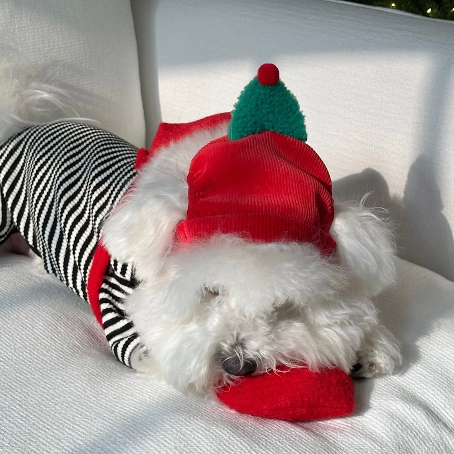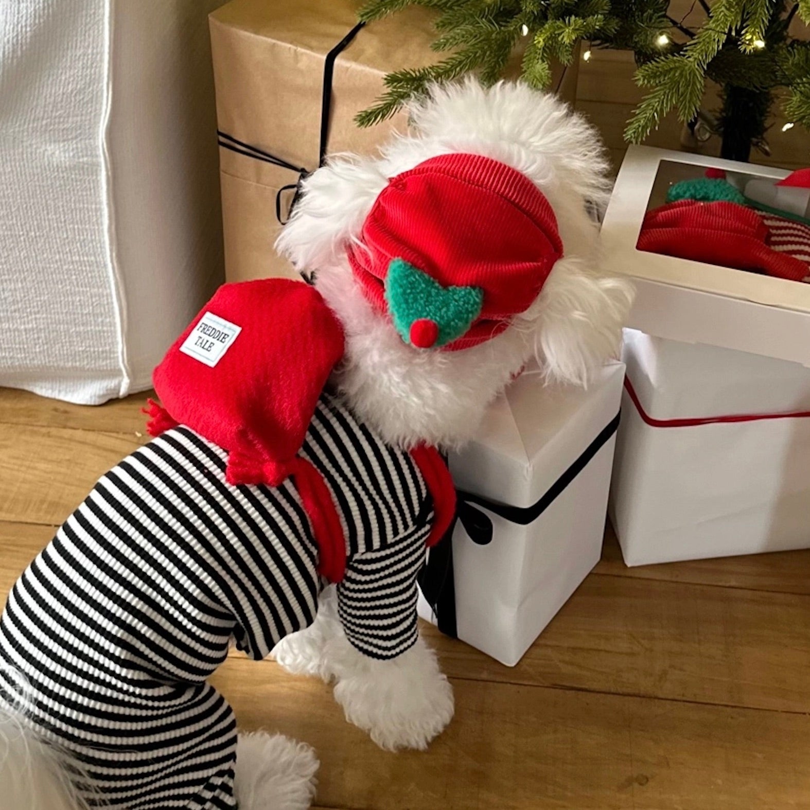 ミニツリーがポイントの帽子は、伸縮性の良いコーデュロイ生地と柔らかいゴムバンドで防寒と可愛さを両立し、より快適に着用することができます。