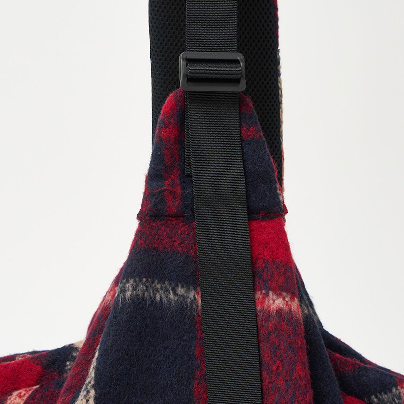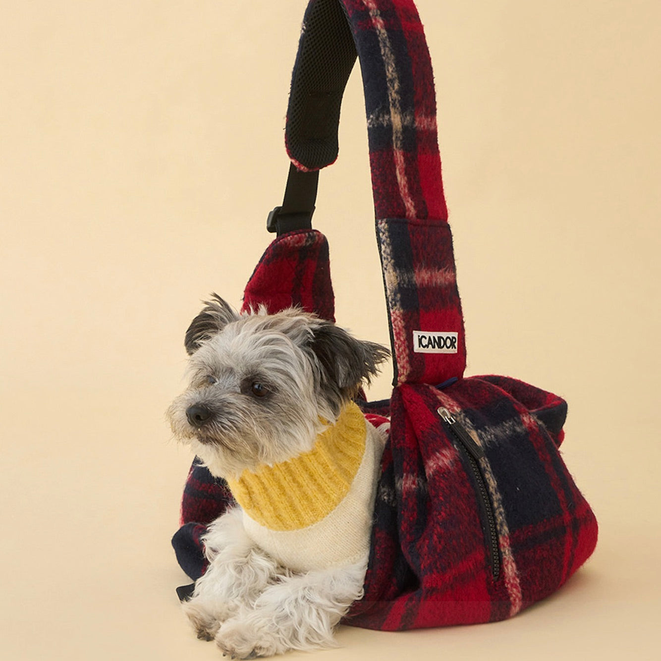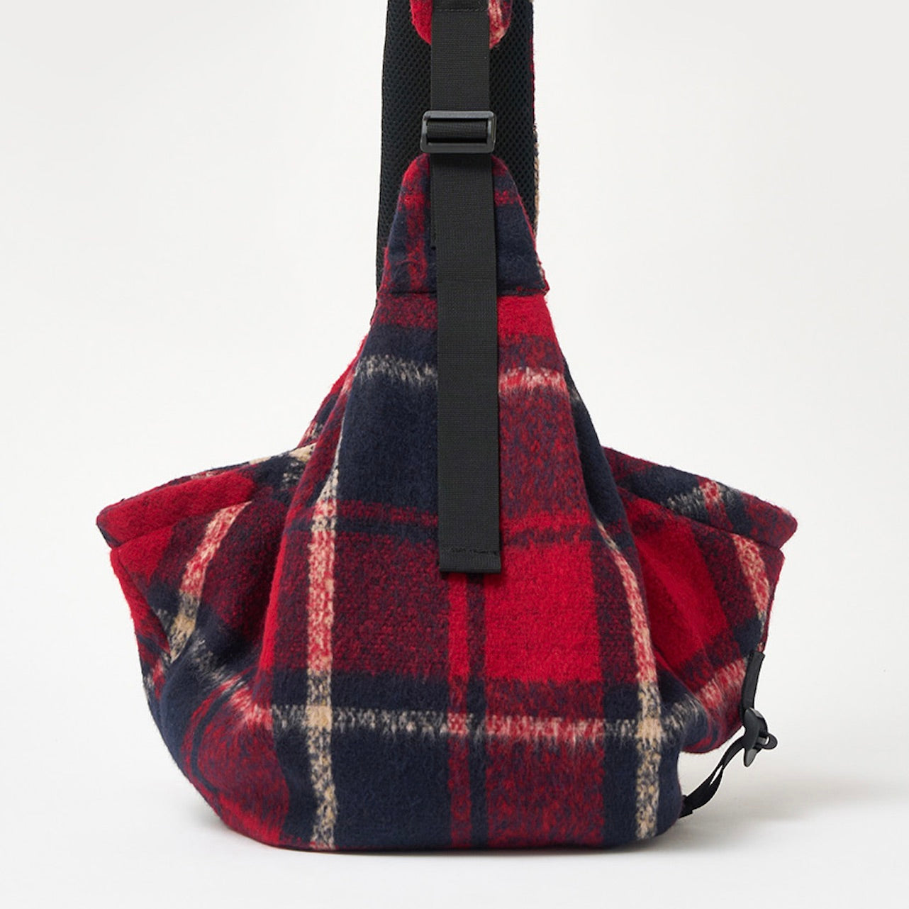 柔らかくてボリューム感のあるウール混のチェックテクスチャーが引き立つ冬にぴったりのカラーリングで愛犬を優しく包み込むスリングバッグ!