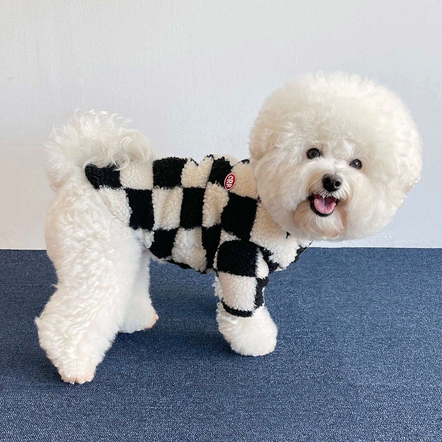 『冬らしいチェッカーボード柄のボアフリースブルゾン』