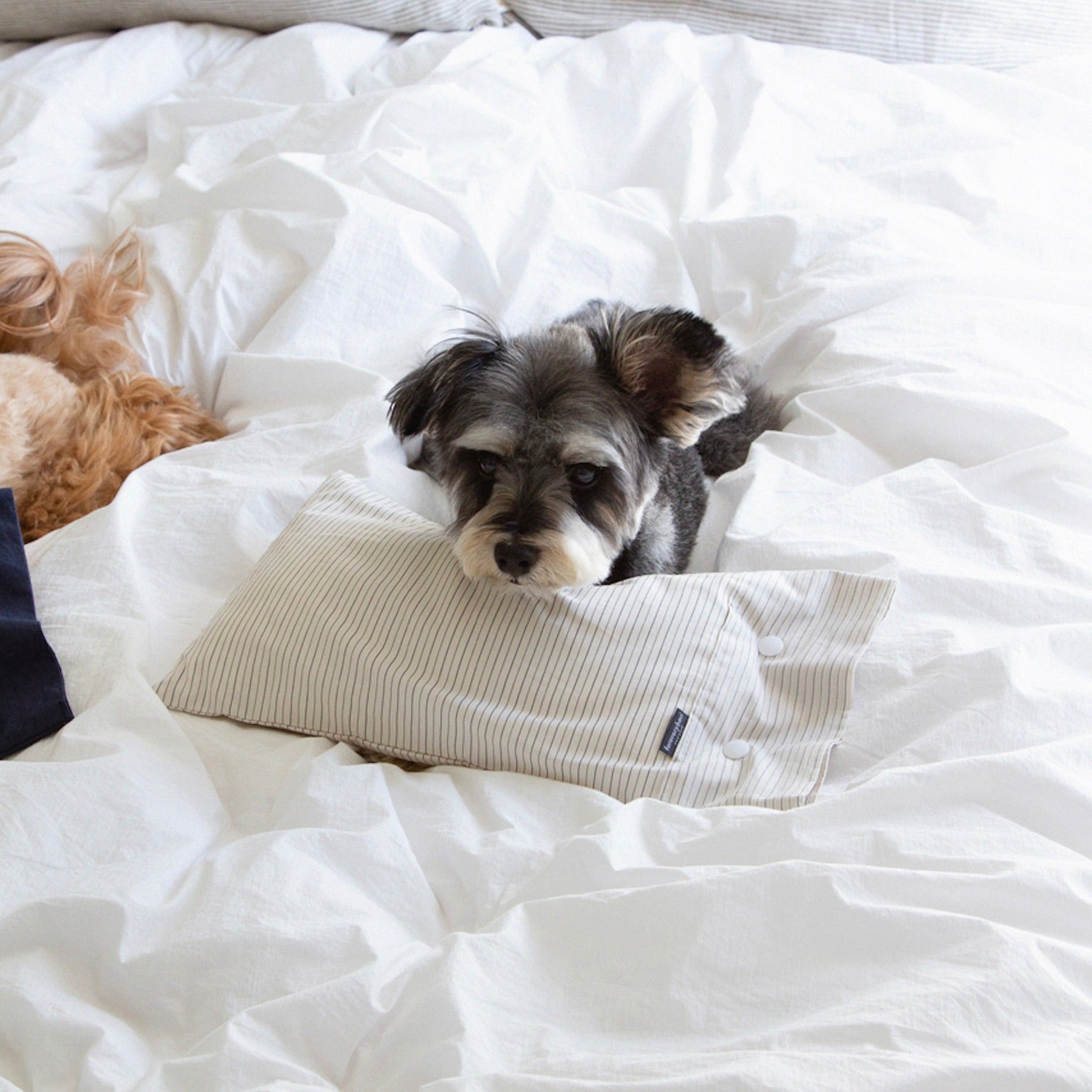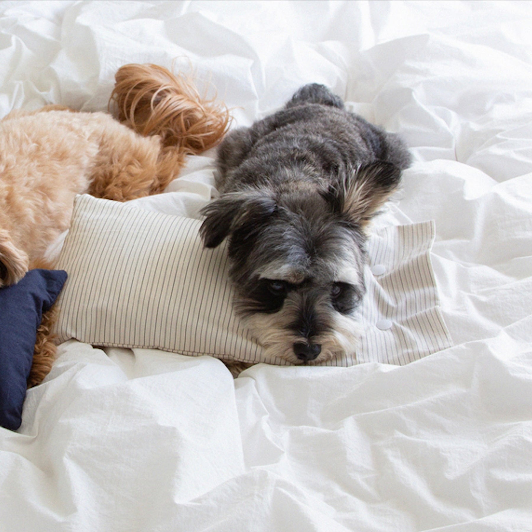 コットン素材の枕は、シンプルなデザインに可愛いスナップディテールがワンポイントとなった枕で、中綿はマイクロファイバーでノミやダニなどの害虫やアレルギー対策に!
