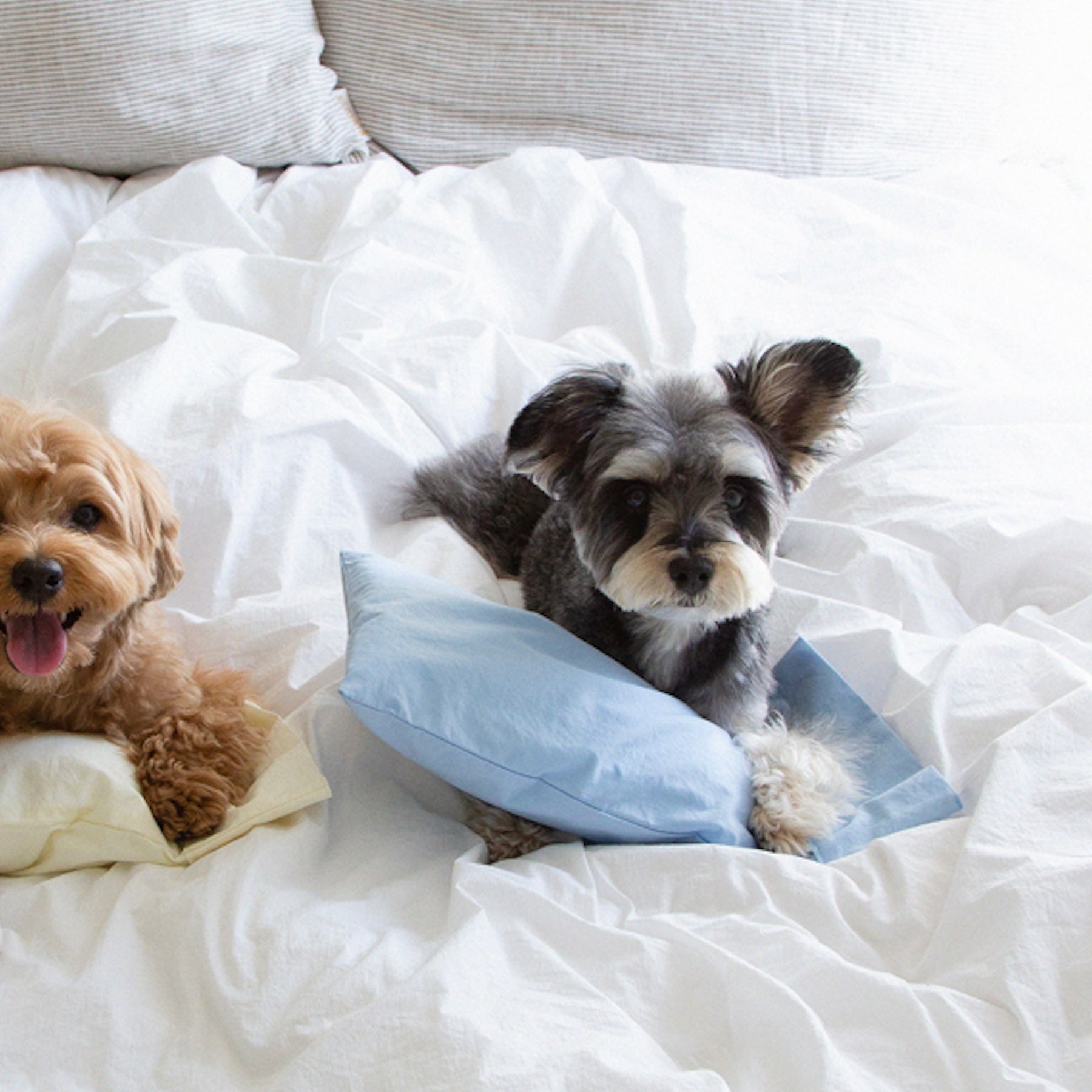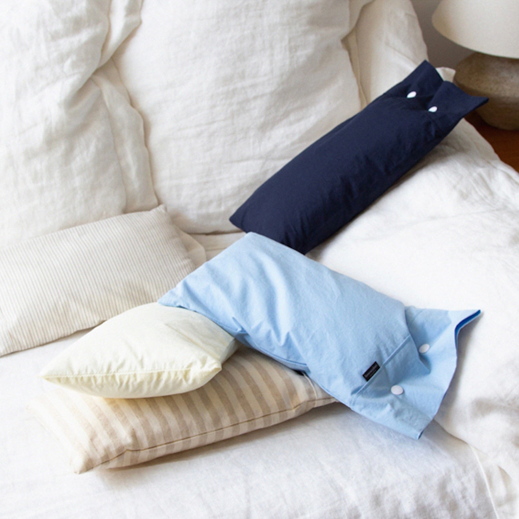 コットン素材の枕は、シンプルなデザインに可愛いスナップディテールがワンポイントとなった枕で、中綿はマイクロファイバーでノミやダニなどの害虫やアレルギー対策に!