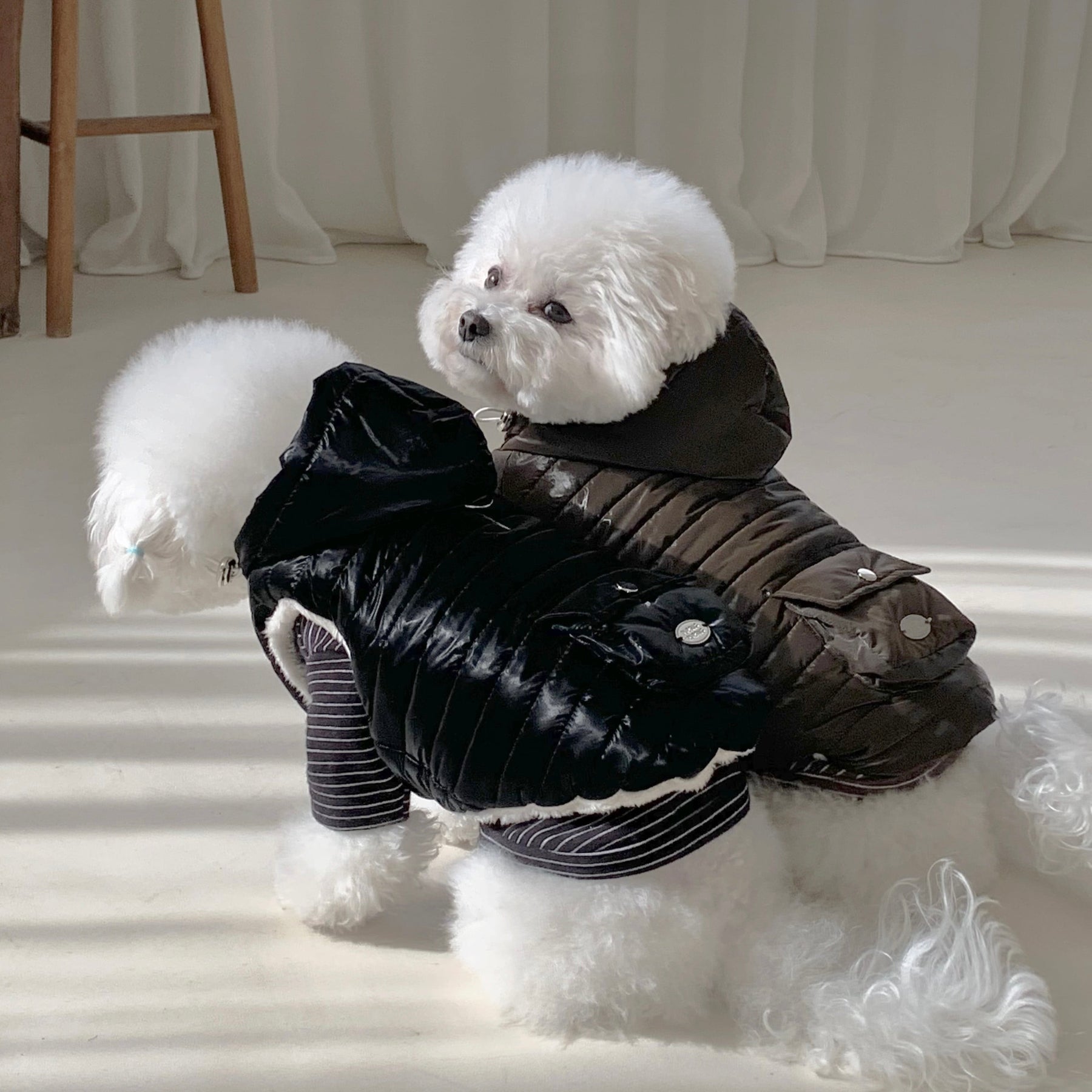 ファスナーは長毛の子の毛が挟まらないように、毛挟み防止ジップになっており、背中にはフードをしっかりと固定させるためのボタンもついており細やかな機能が盛りだくさん!