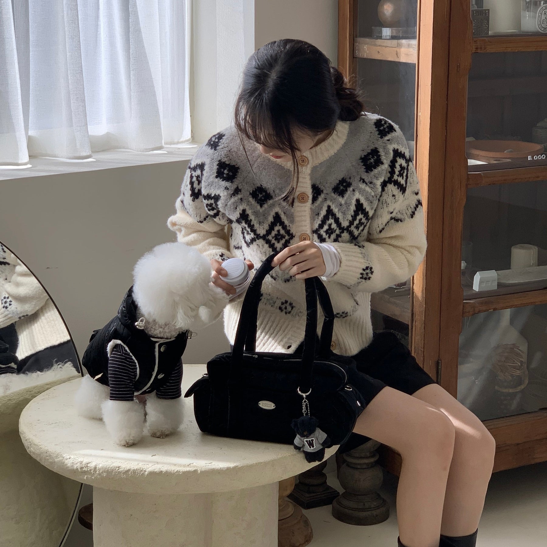 表地は生活防水のナイロン100%、裏地は柔らかいショートファーの生地で製作しました。