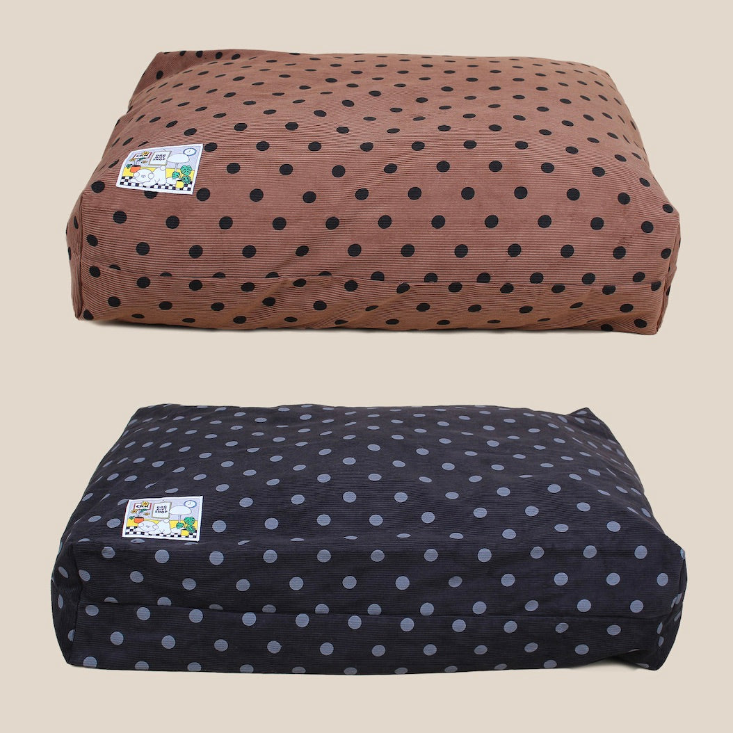 インテリアのポイントになり、こまめに洗濯ができ、内部のボリューム感も容易に調整することができるクッションが欲しいと考えて企画されたコーデュロイ素材のドット柄クッションです。