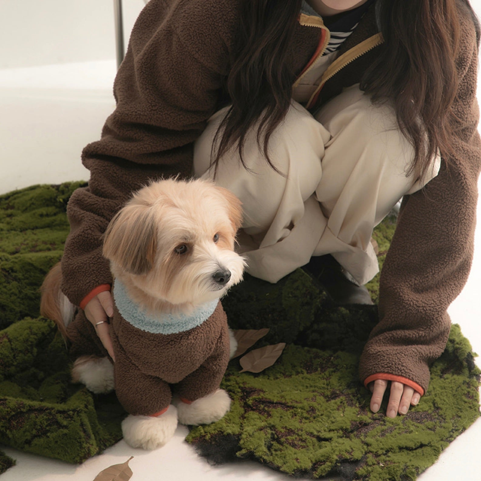 別売りのオーナー用フリースジャケットを着ることで、お揃いコーデも可能です。