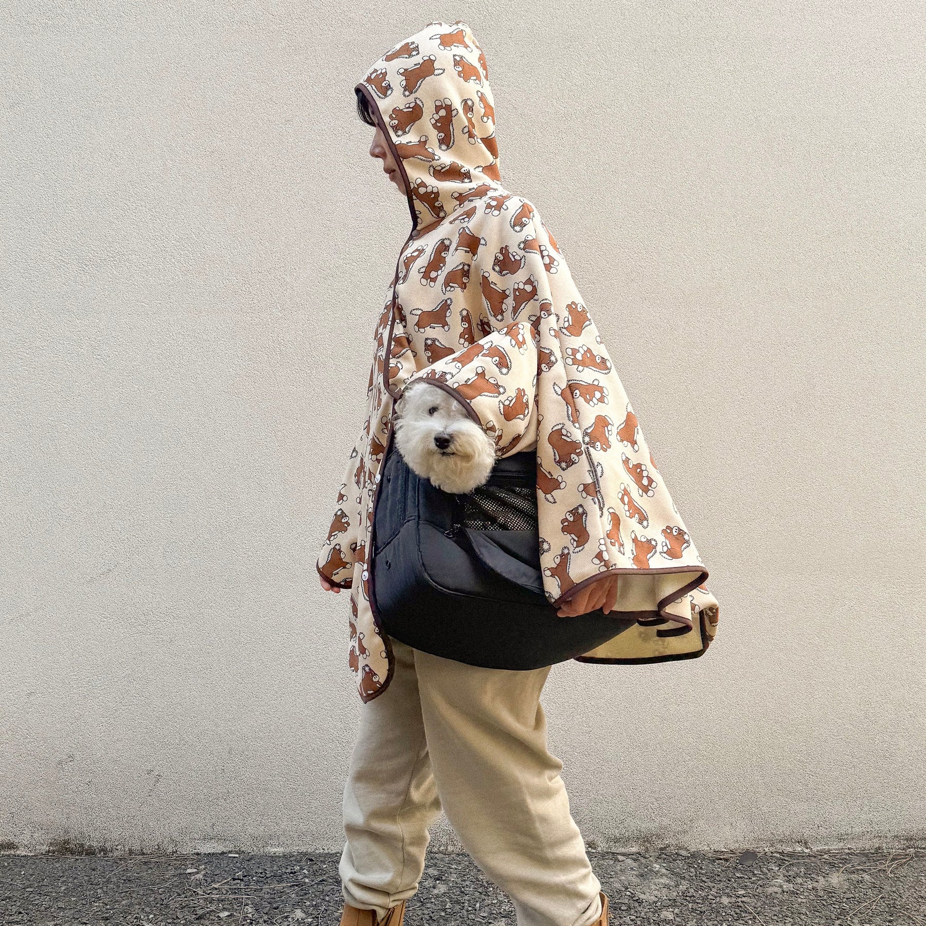 カフェやレストラン、ペットカートの中、キャンプ場など寒空の下で、じっと座っているときに体温を保てるように体を覆うことができます。