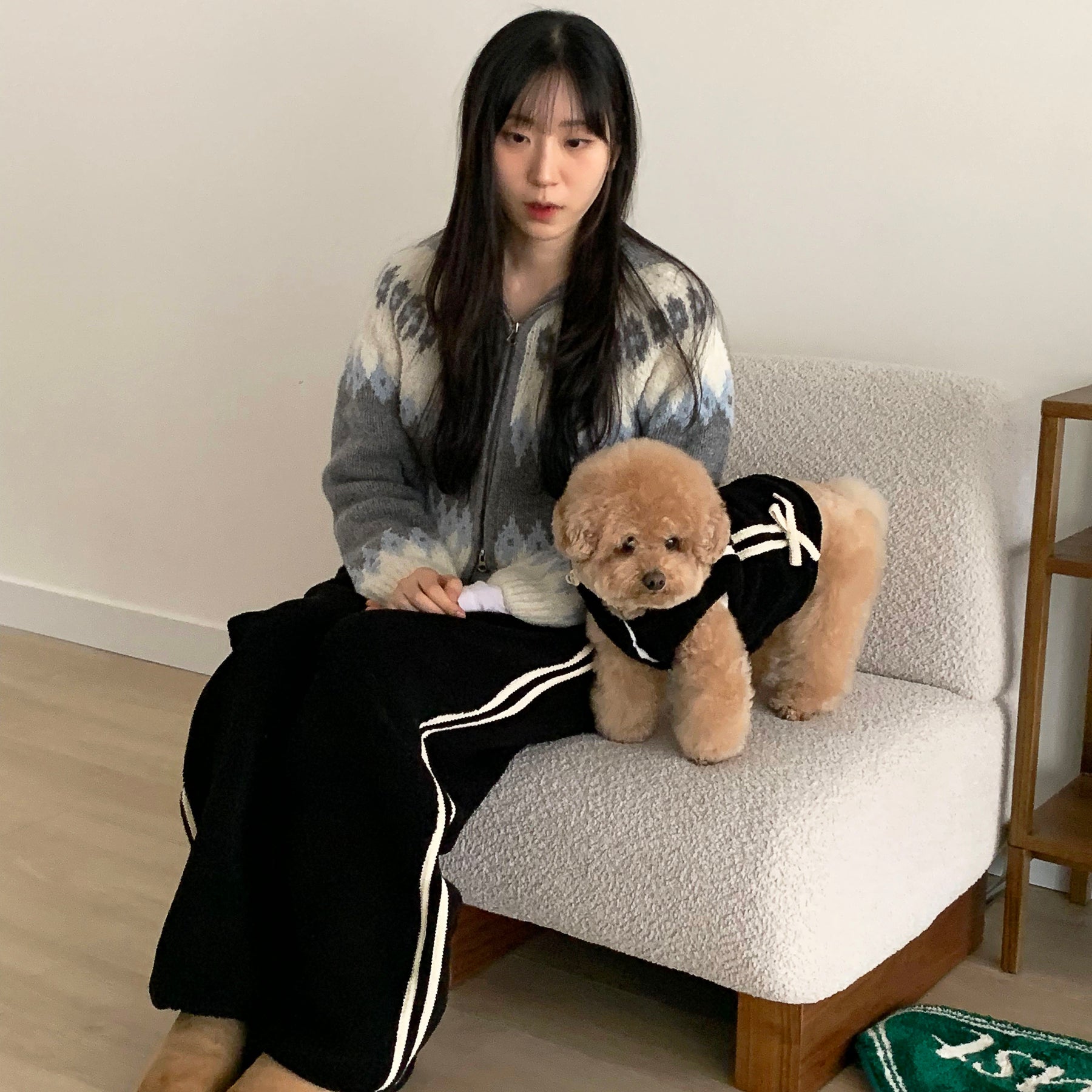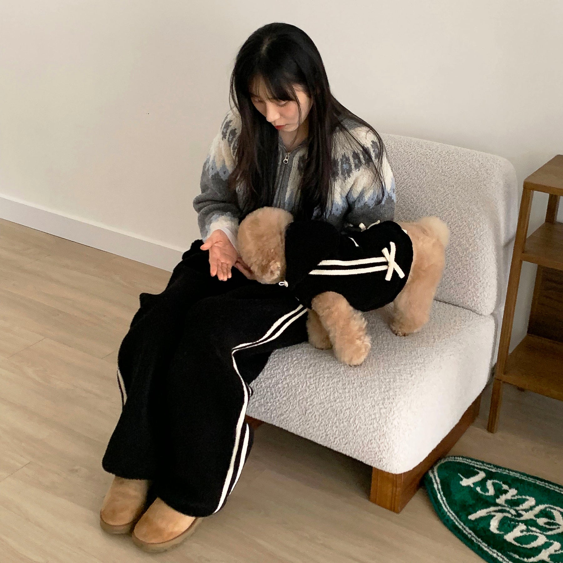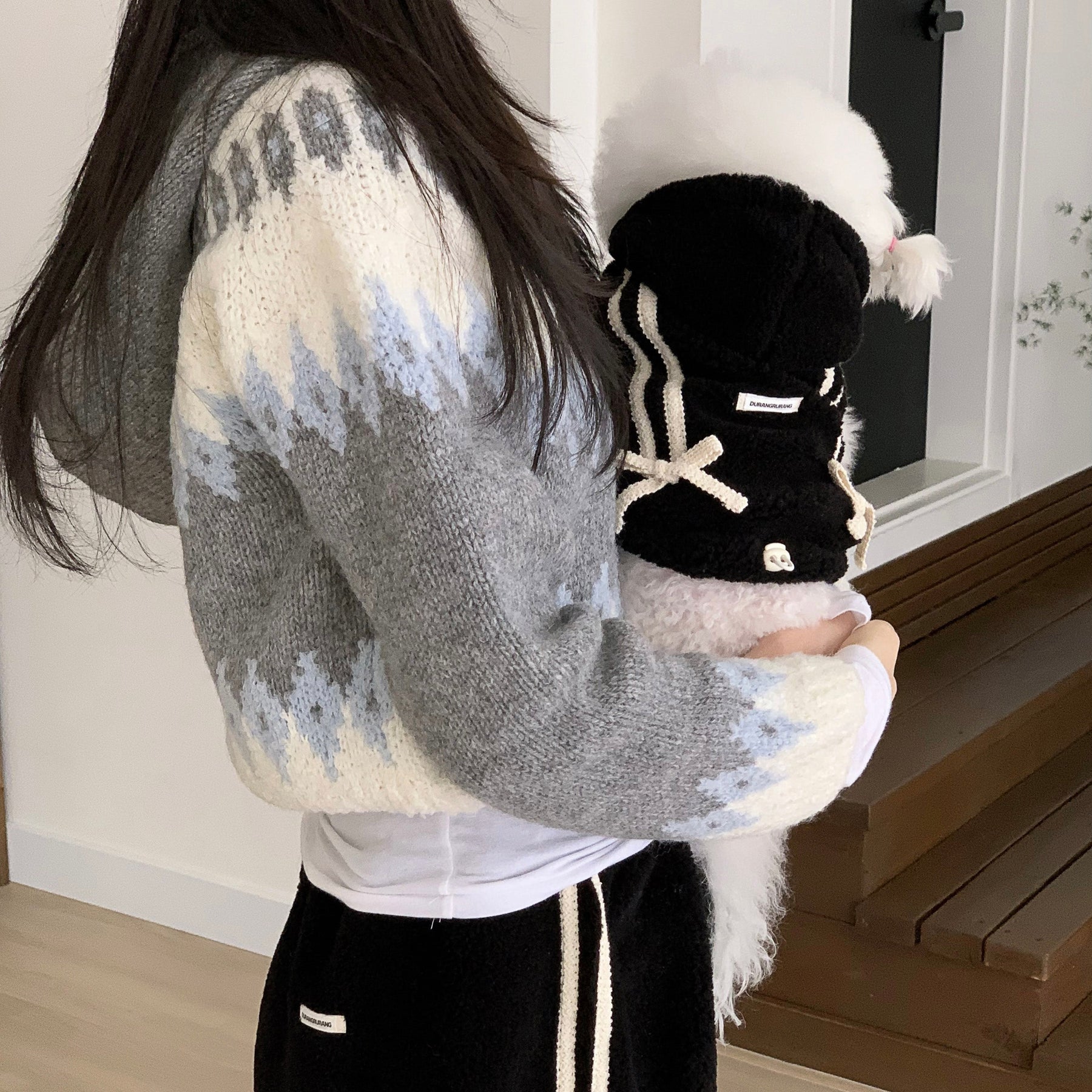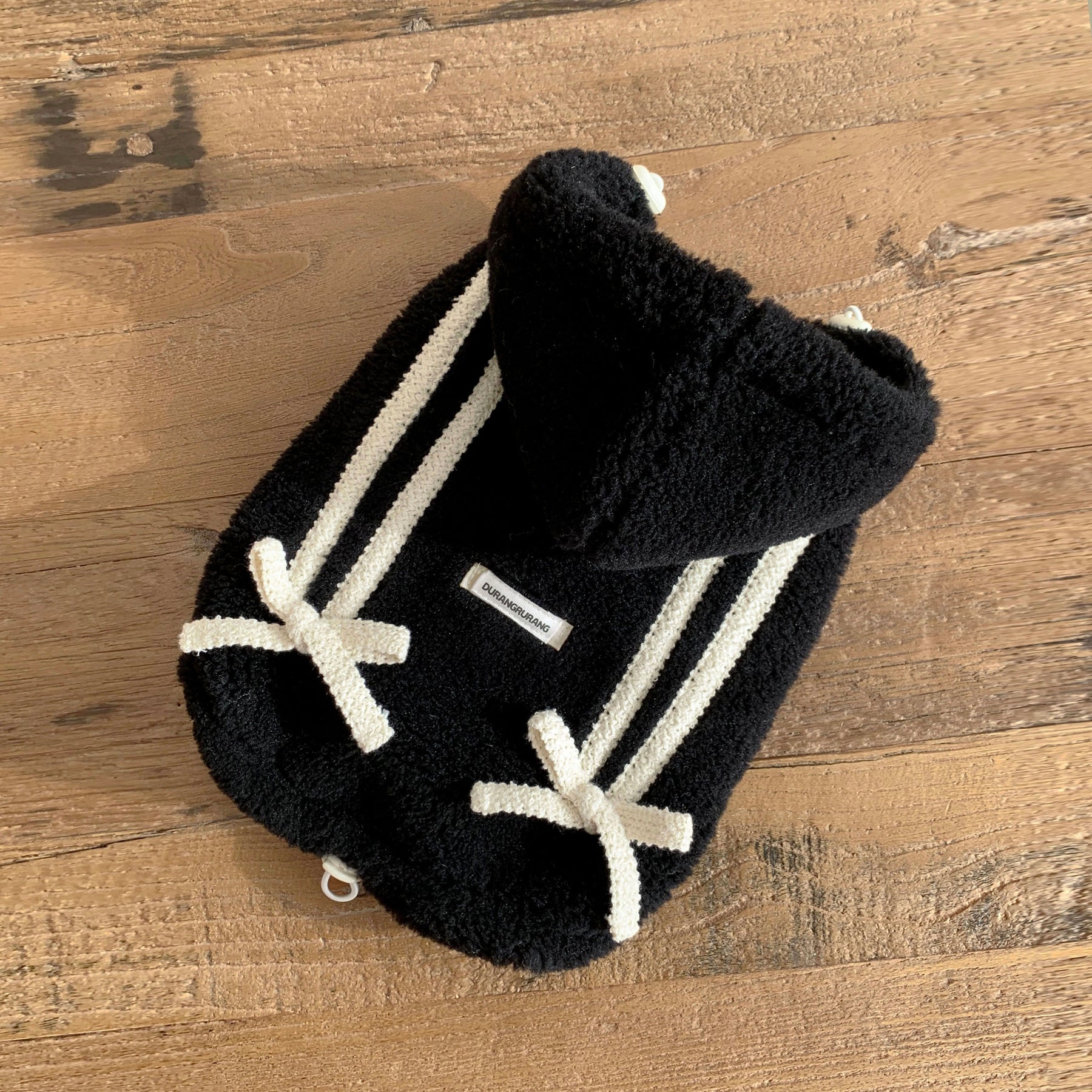 大人気韓国ブランド"DURANG RURANG"のRibbon Boa Hoodie Jumper(Black)です。