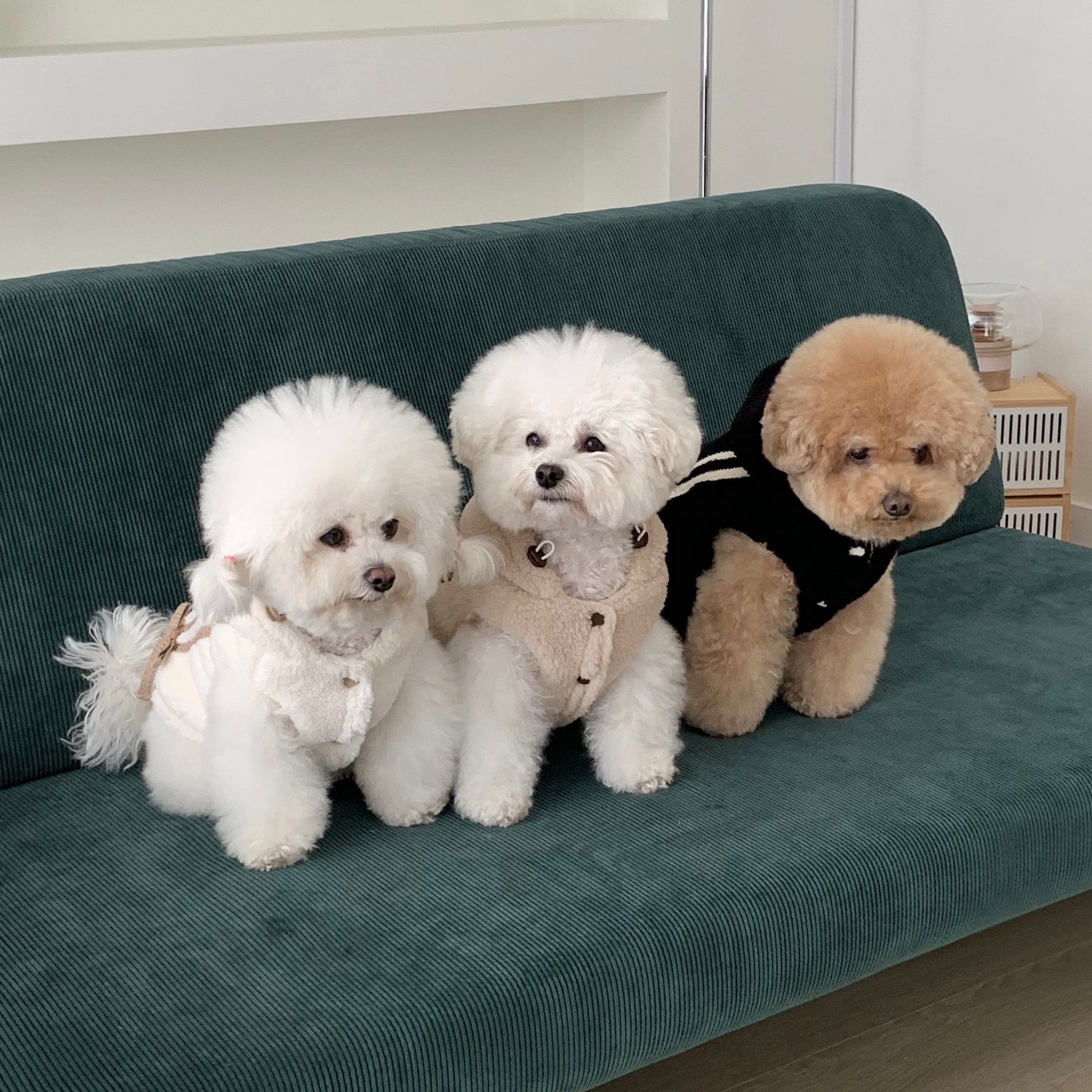 ※商品サイズをお選びいただく際、着丈が長すぎなければ、胸囲と首回りはペットの測定サイズより1〜2cmほど余裕を持ってお選びください。