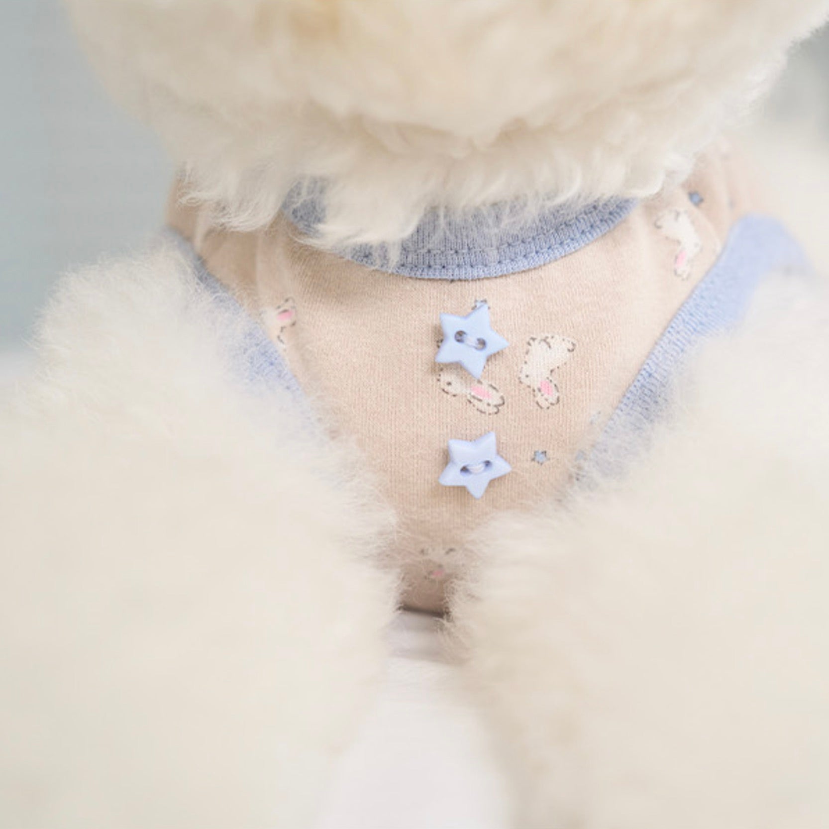 ビンテージ風の絵柄のウサギと星が調和したイラスト生地で製作し、まるで童話の中の一場面のような雰囲気を作ってくれます。