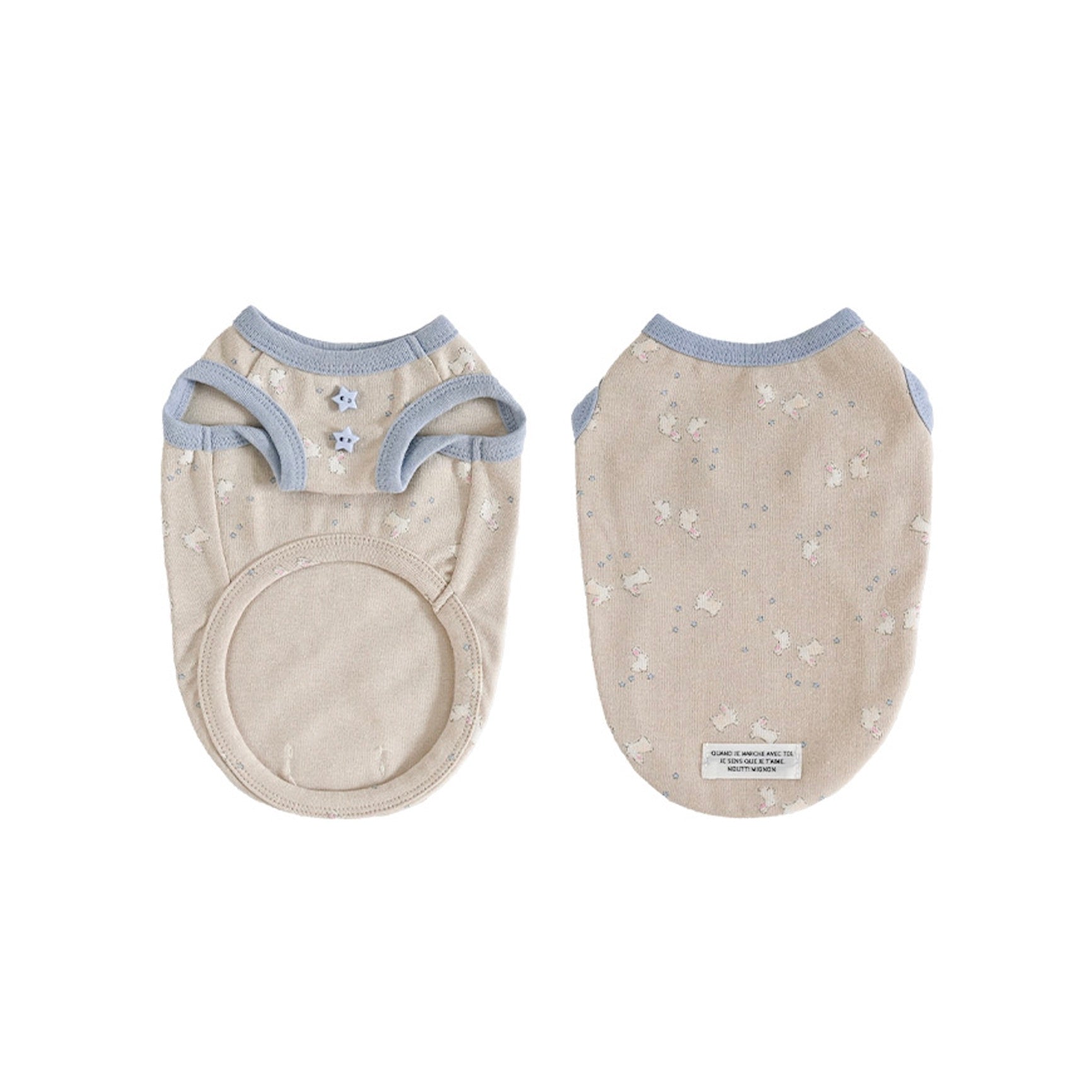 愛らしいウサギと星が輝くグッドナイトラビットスリーブレスは、40番手のフライススパン素材で作られており、柔らかくて伸縮性に優れています。