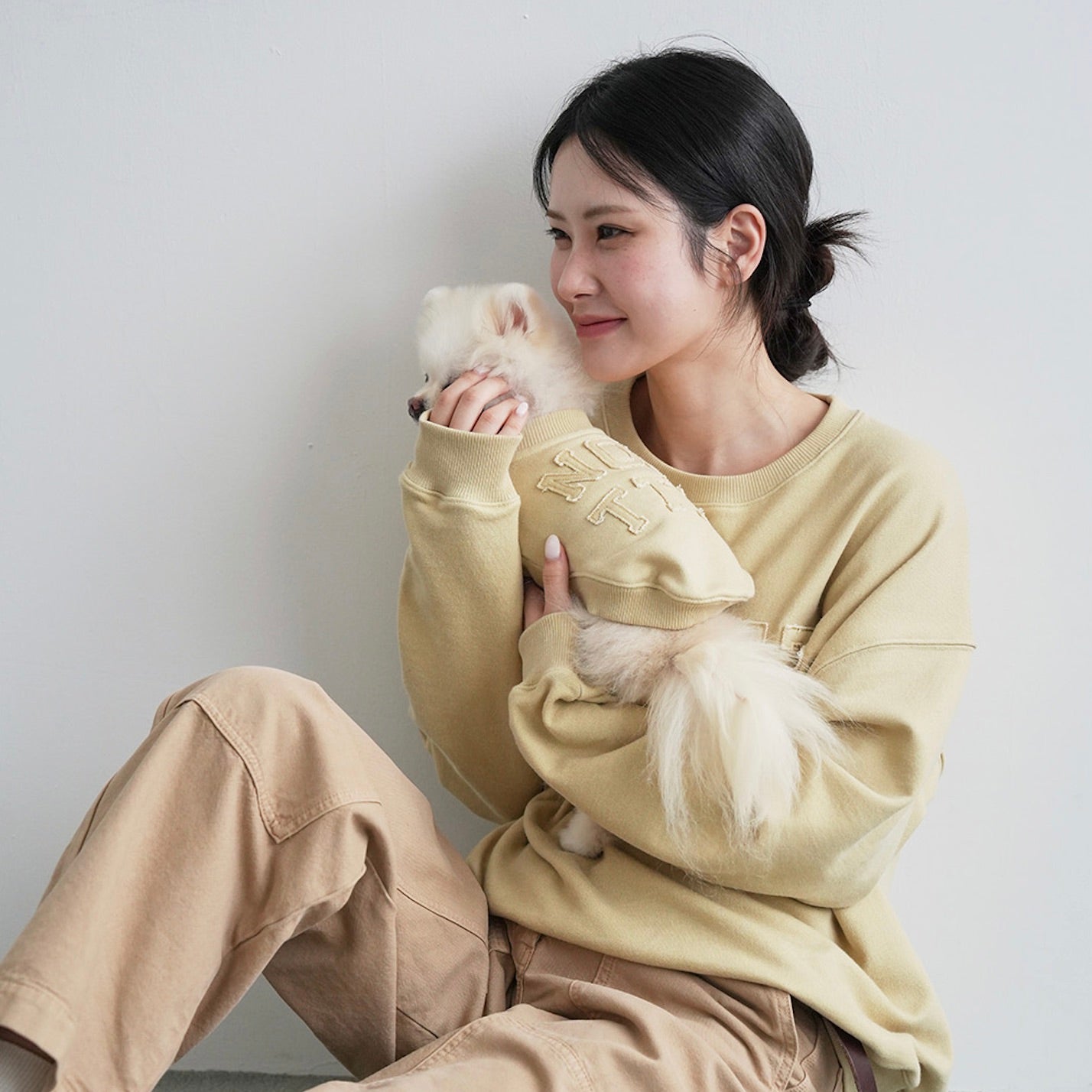韓国で大人気のブランド"noutti"のGroovy Sweat Shirt(Olive Mustard)です。
