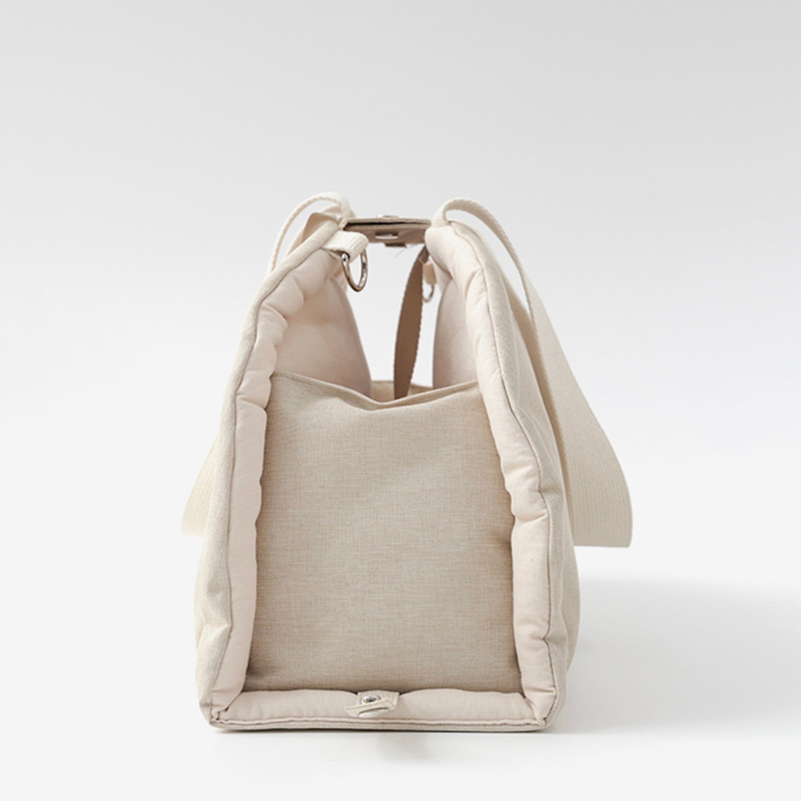 バッグはフルオープンに開くことができるので、レストランや公園など着席時やリラックスさせたい時などは、飛び出し防止フックをつなぎながら、カフェマットやリラックスバッグとしてもご利用いただけます。