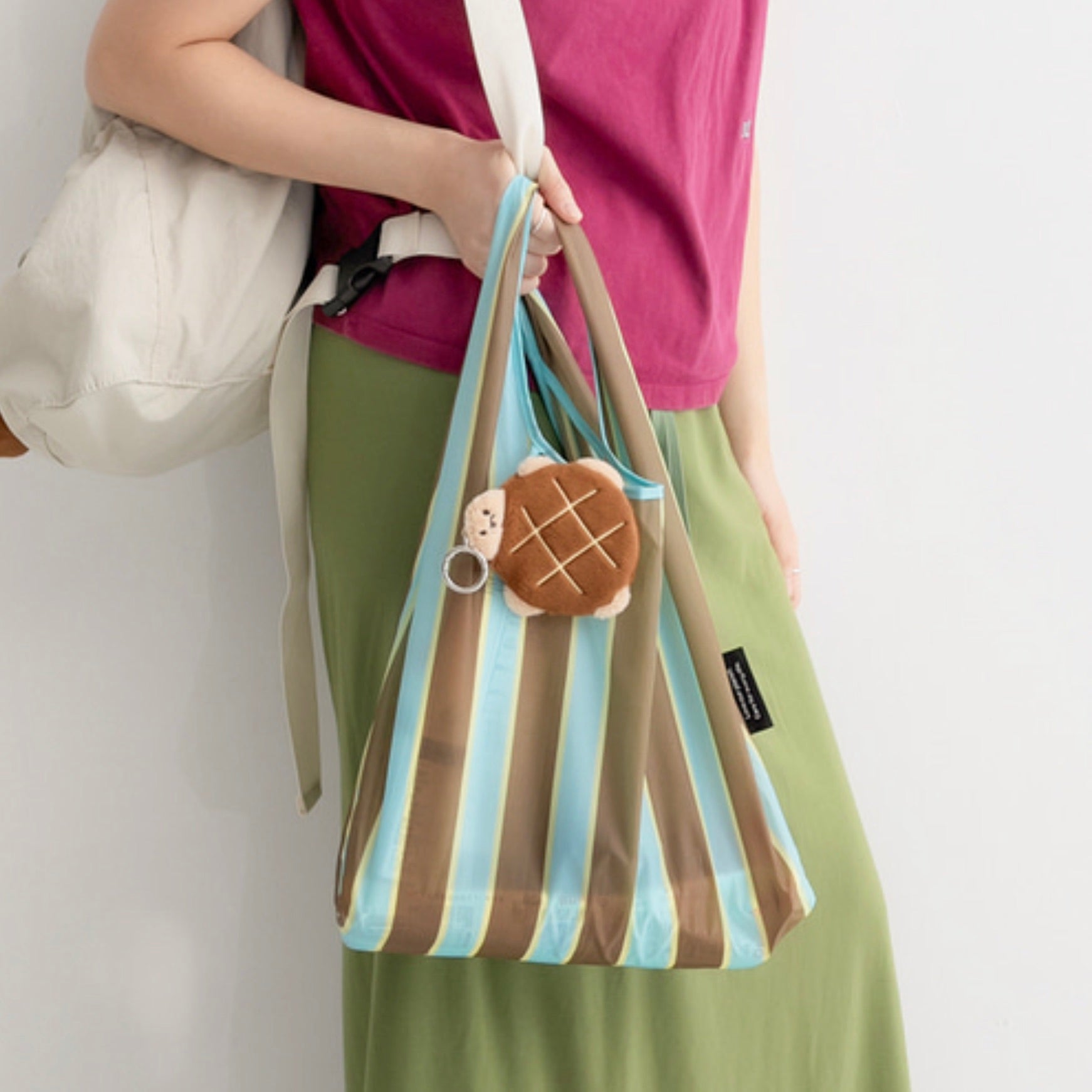 バッグにつけて持ち歩いてお買い物などの際にエコバッグとしてご使用ください。