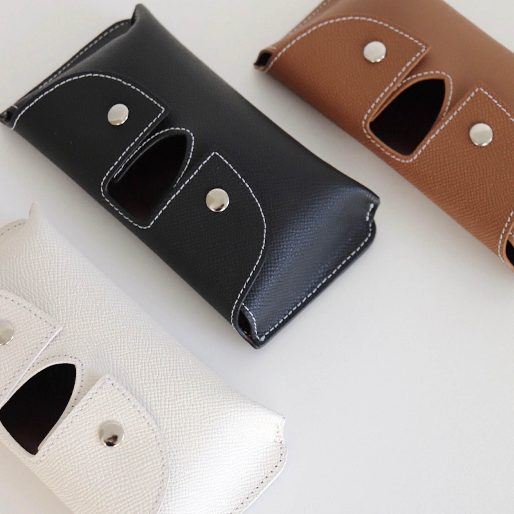 柔らかくしなやかな高級牛革を使用したブラシケースは高級感たっぷりな重厚感のある色展開!