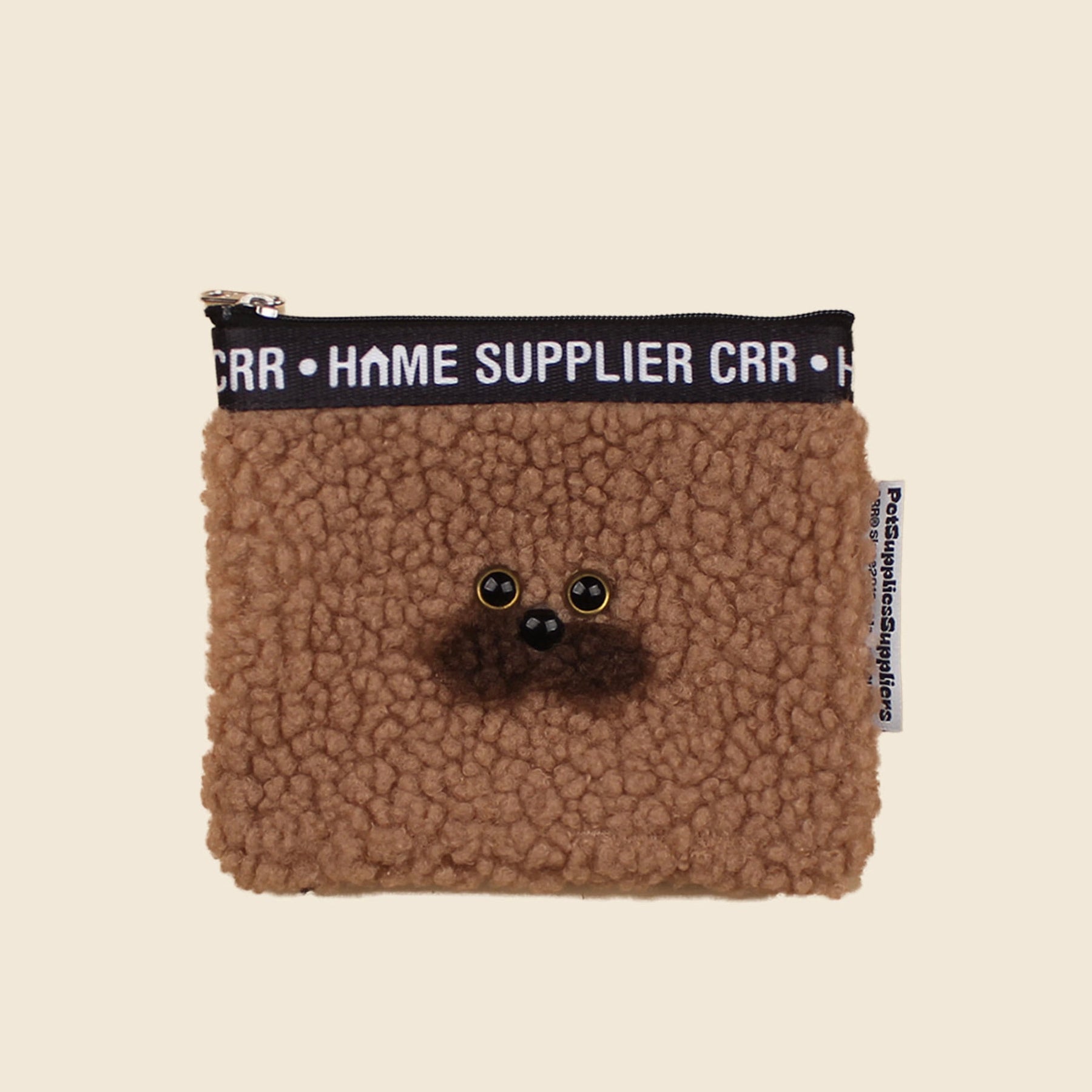 『CRRのボアフリース生地動物シリーズの犬デザイン小物入れポーチ』