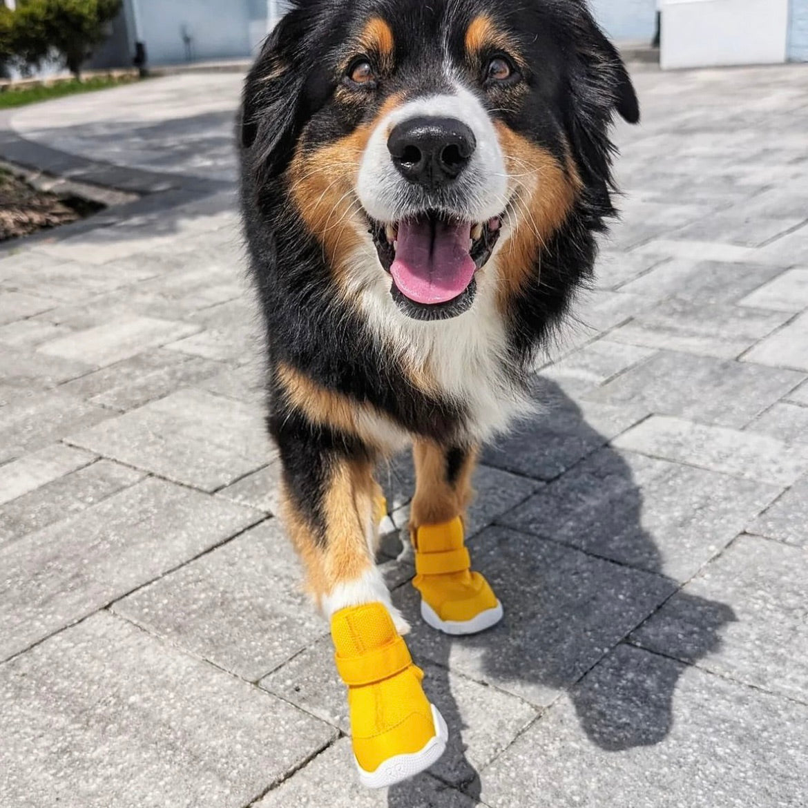 割れたガラスなどの人工物や、雨の日の濡れた地面、暑い日の燃えるアスファルト、凍える寒さの雪の上などからの大切な愛犬を守る特別なプレミアムスニーカー!