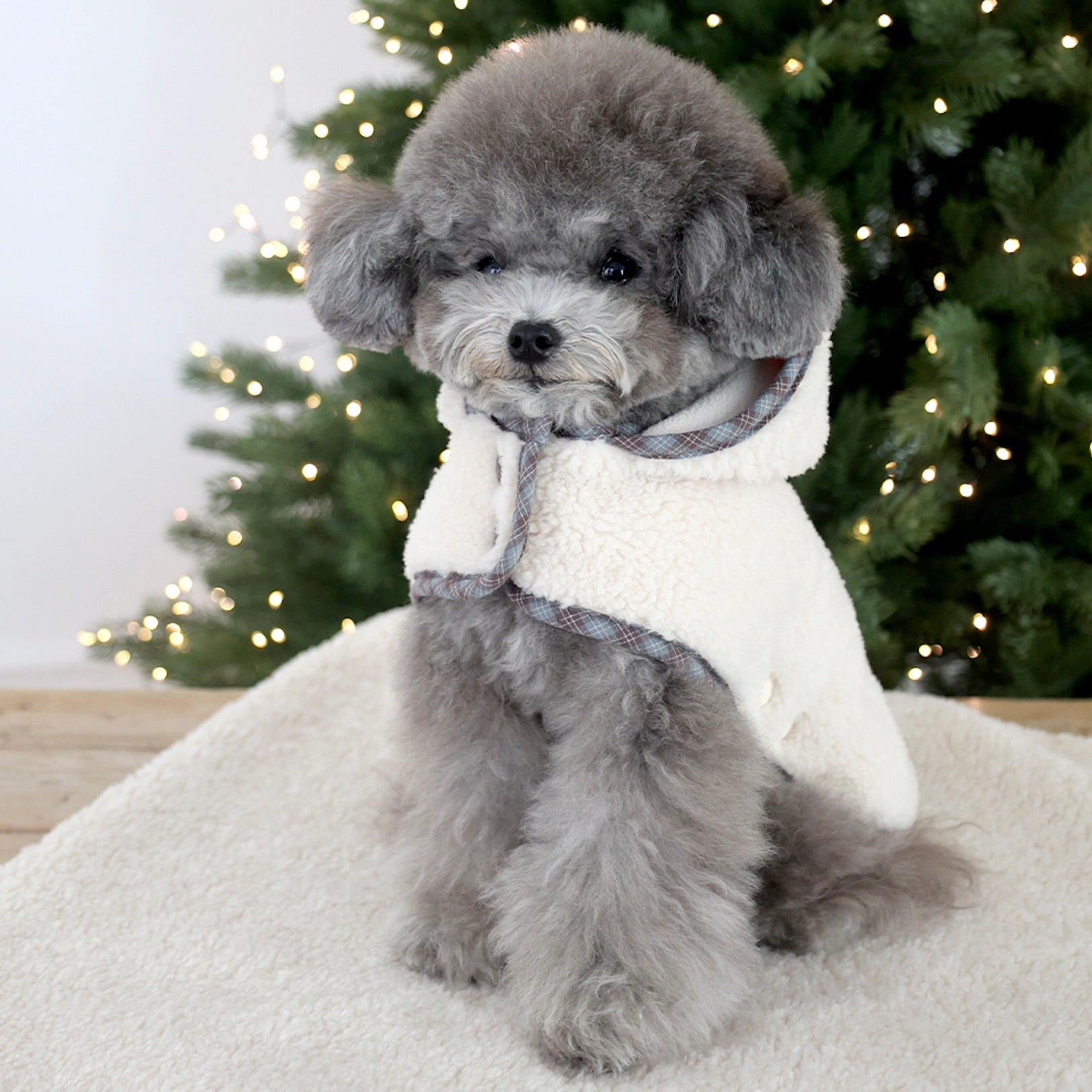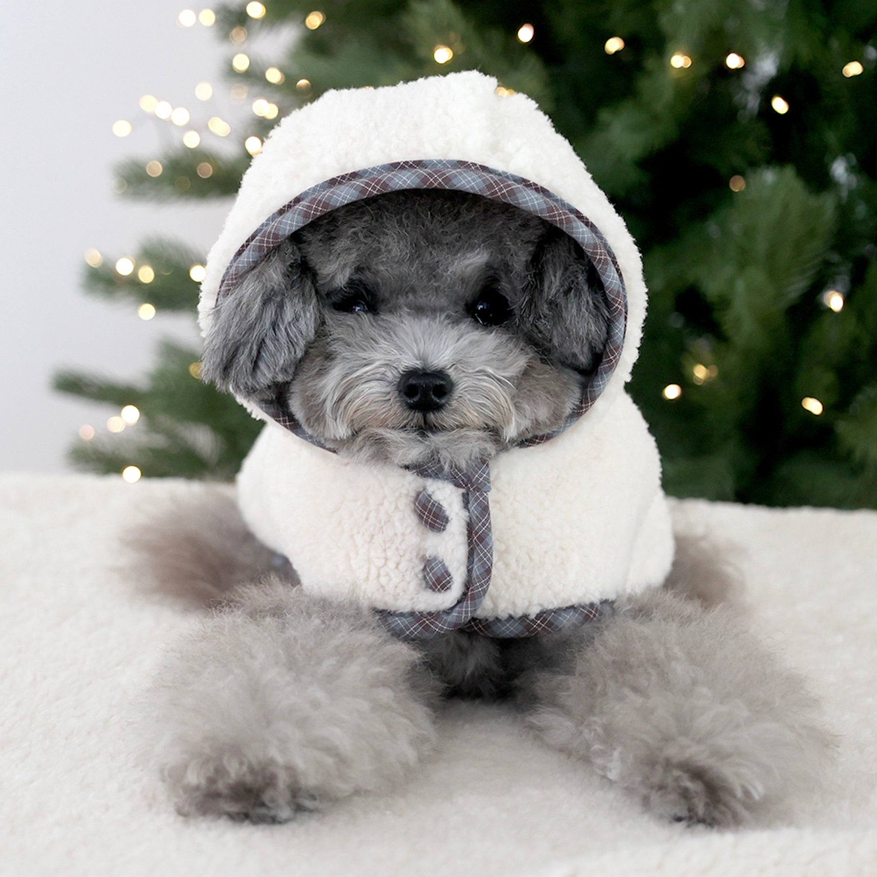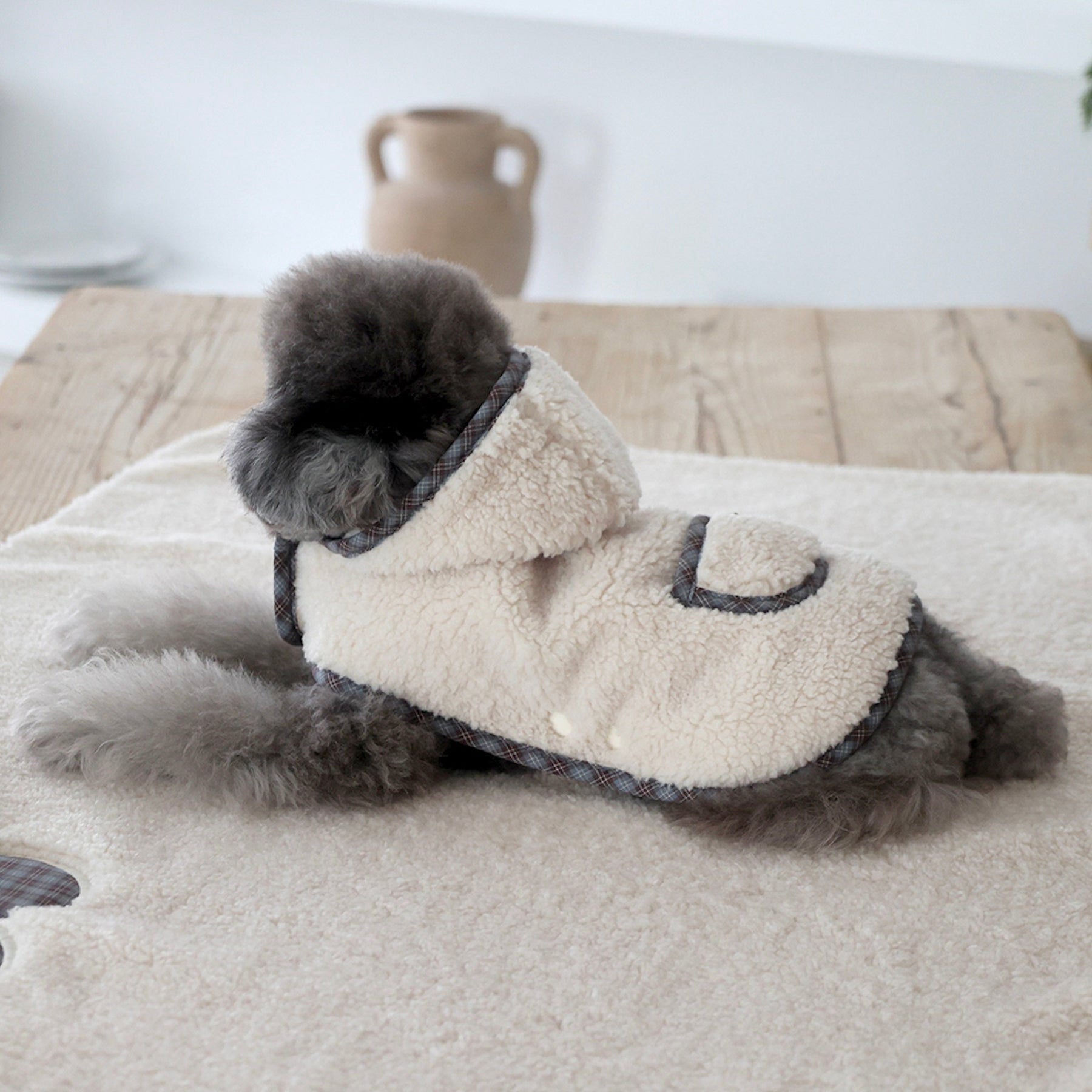 『ブークレとプレーンのダブルフリースで暖かなふんわりフードコート』