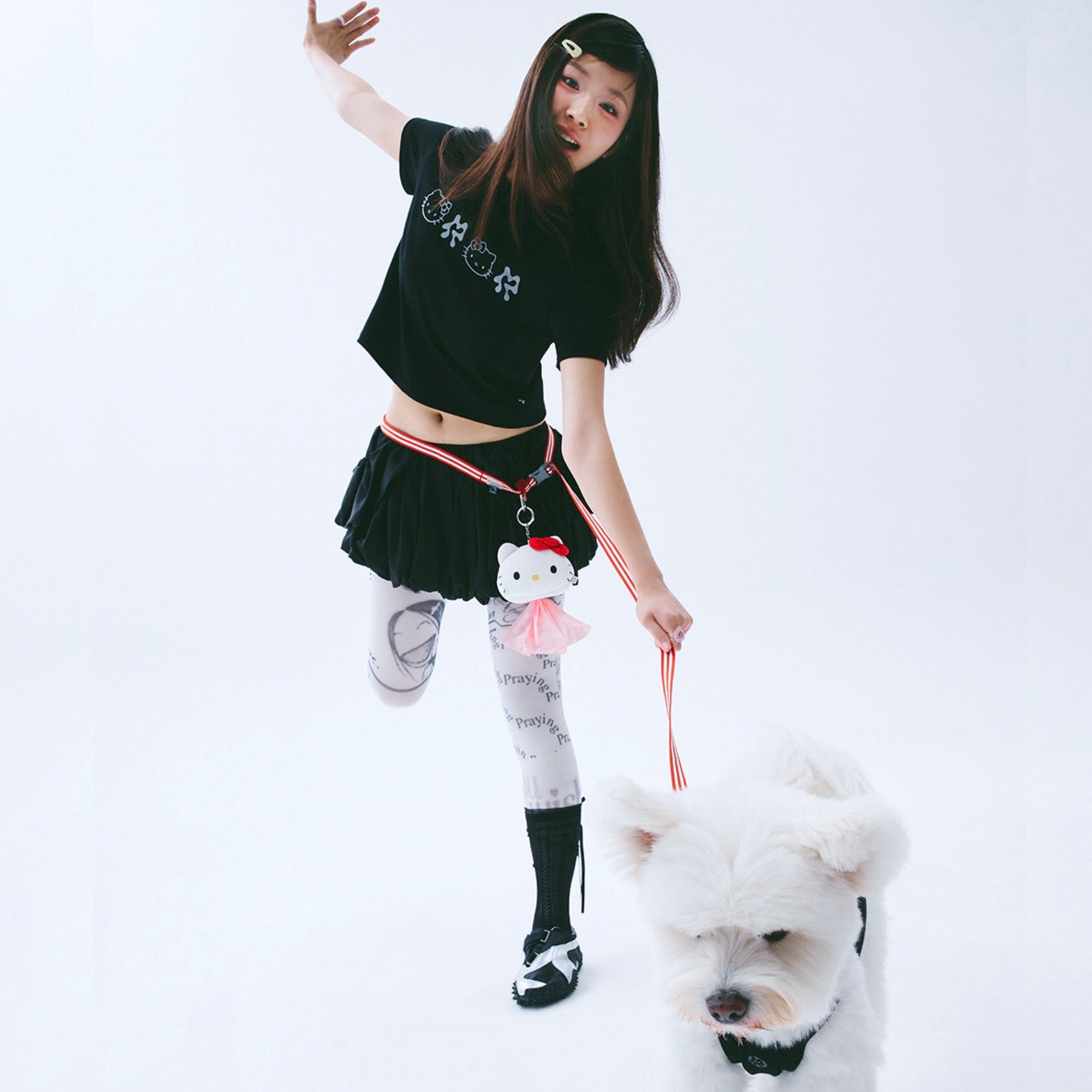 韓国で大人気のブランド"ARUMARUと"HELLO KITTY"のコラボアイテムHELLO KITTY × ARUMARU Logo crop top set(Black)です。