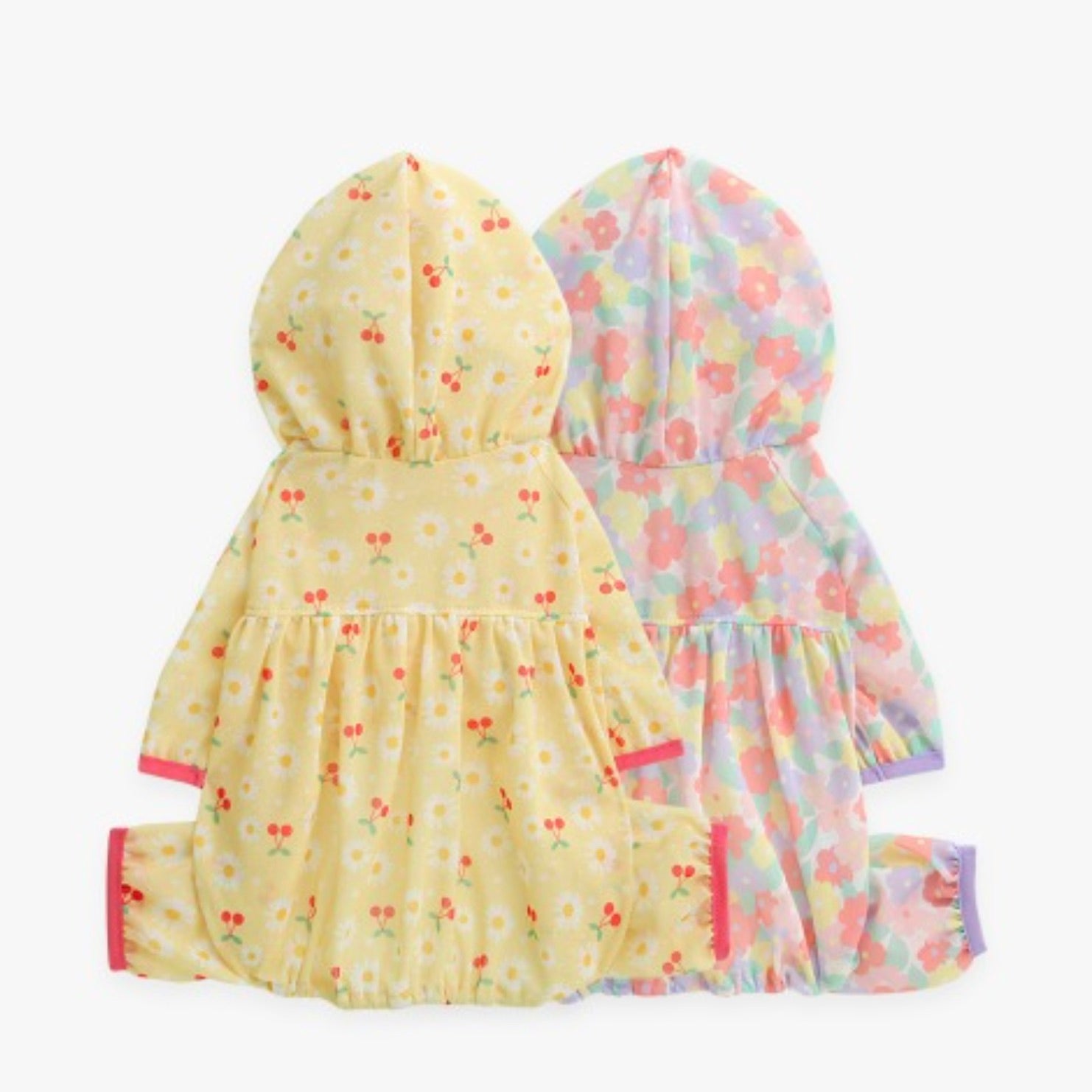 フラワープリントの防虫オールインワンは、大切なお子様を蚊やダニ、害虫などから守り、通気性も良いため、暑い時期でも快適なお散歩をサポートしてくれます。