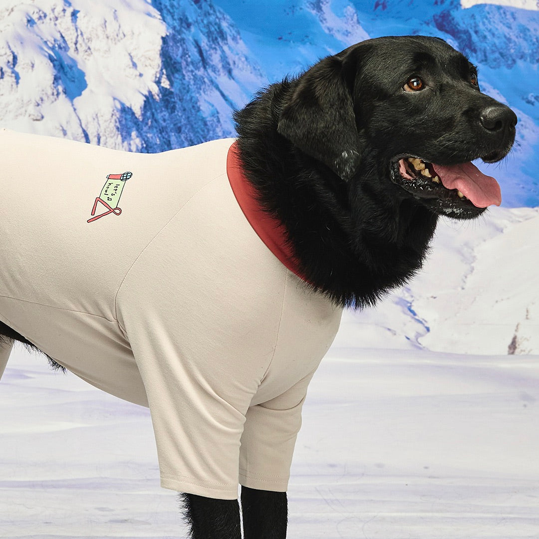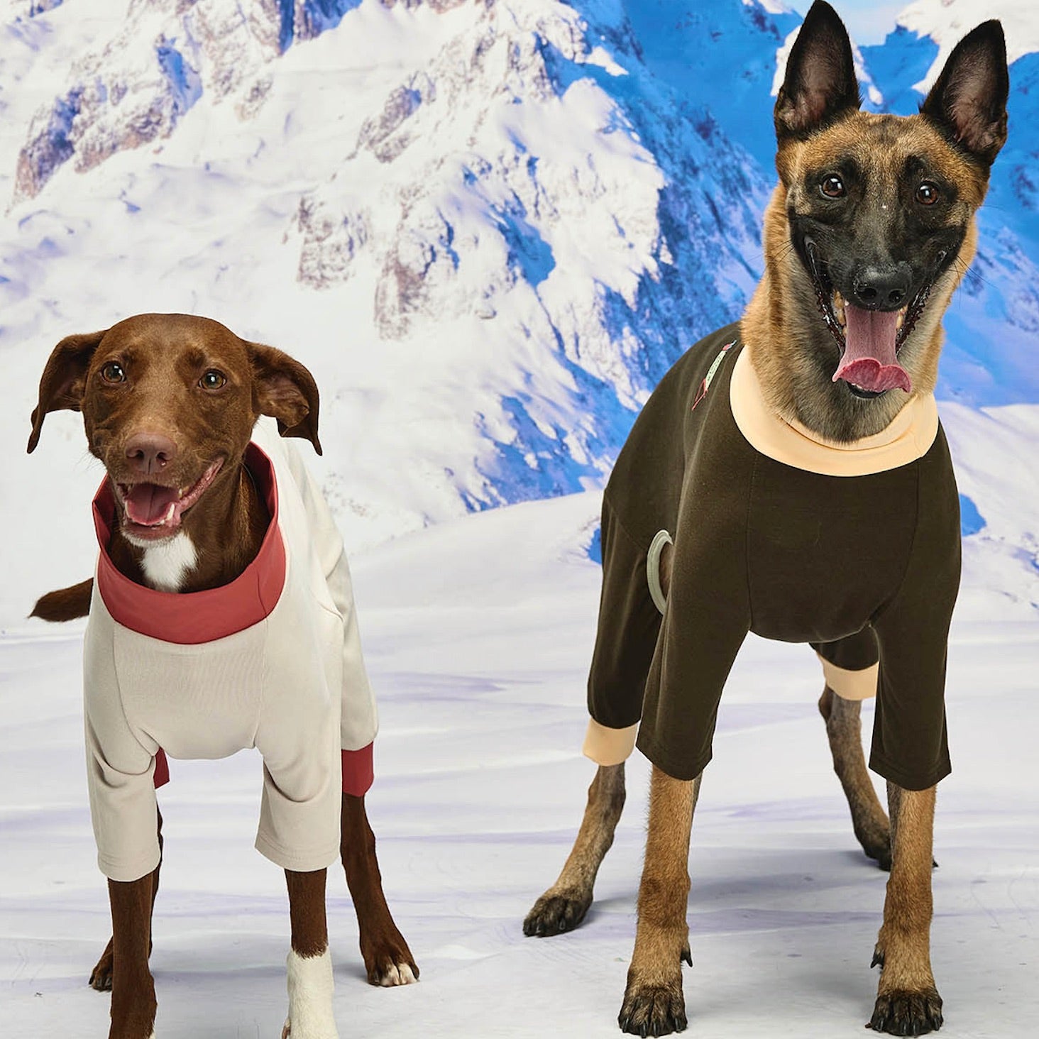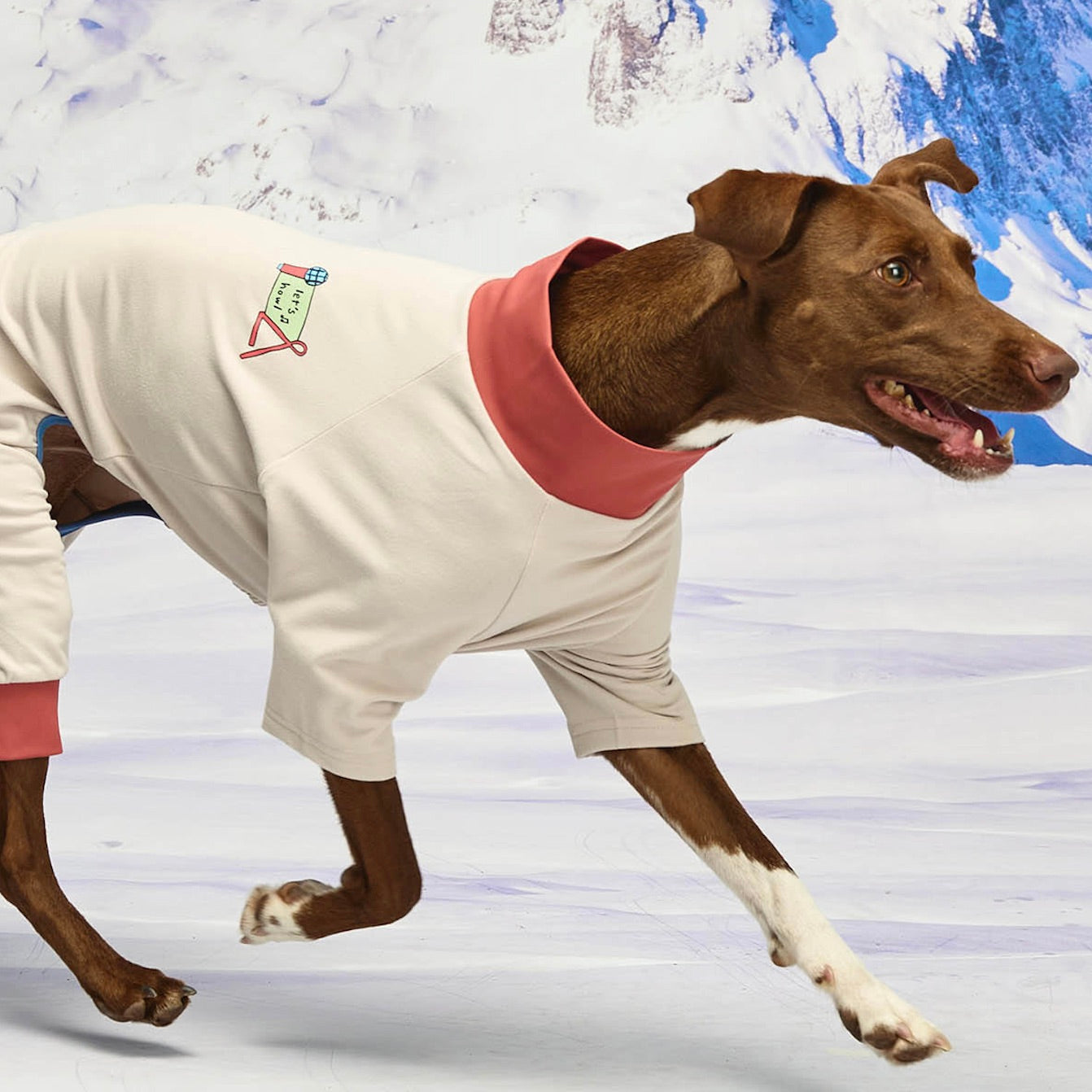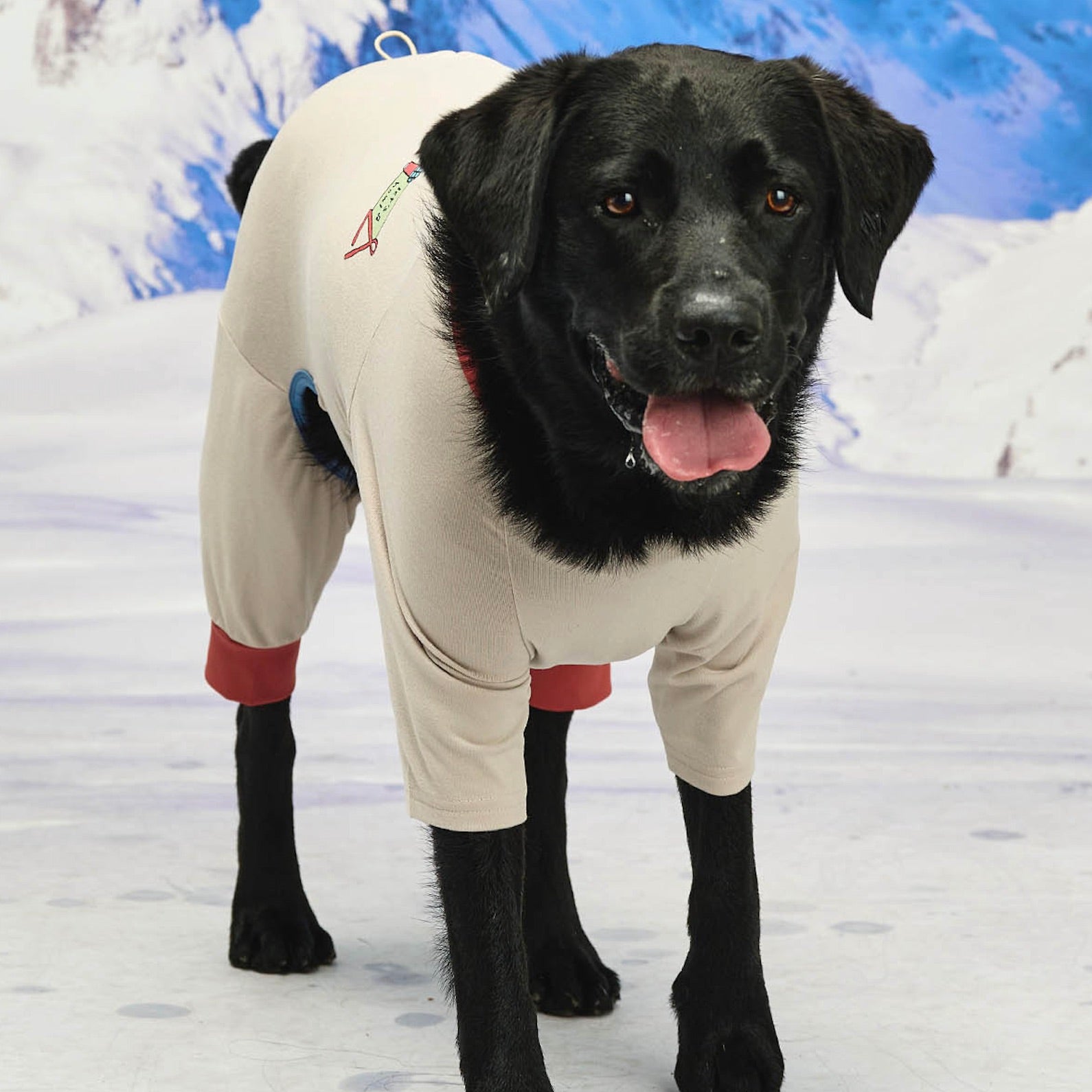 ④ 犬体工学に基づいたUラインパターンで、これまでオールインワンを着用すると尻尾が押されてしまって窮屈だったわんちゃんも快適に着用できます。