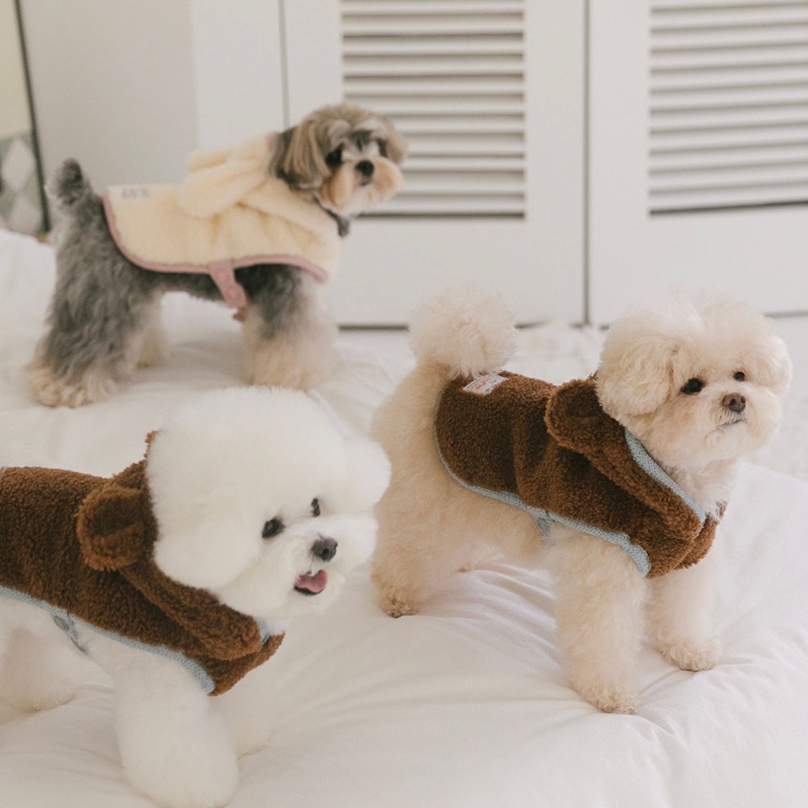 着脱とサイズ調節に便利なサイドスナップクロージングで服を着たくない子にも楽に着用されることができ、ポンチョの中にハーネスを着用できるようにリードホールのディテールもあるため便利です。
