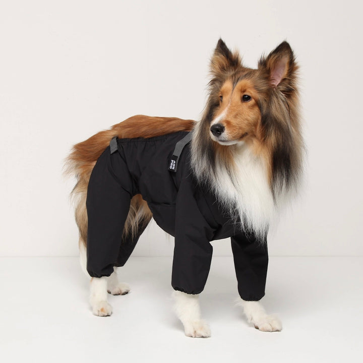 レインコートとボディスーツを結合した後、お尻の方にあるバンドを足に通すことで完璧に固定できます。
