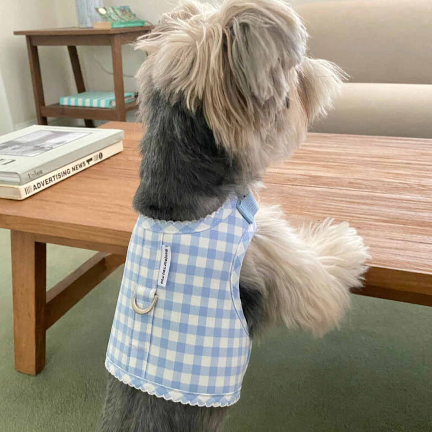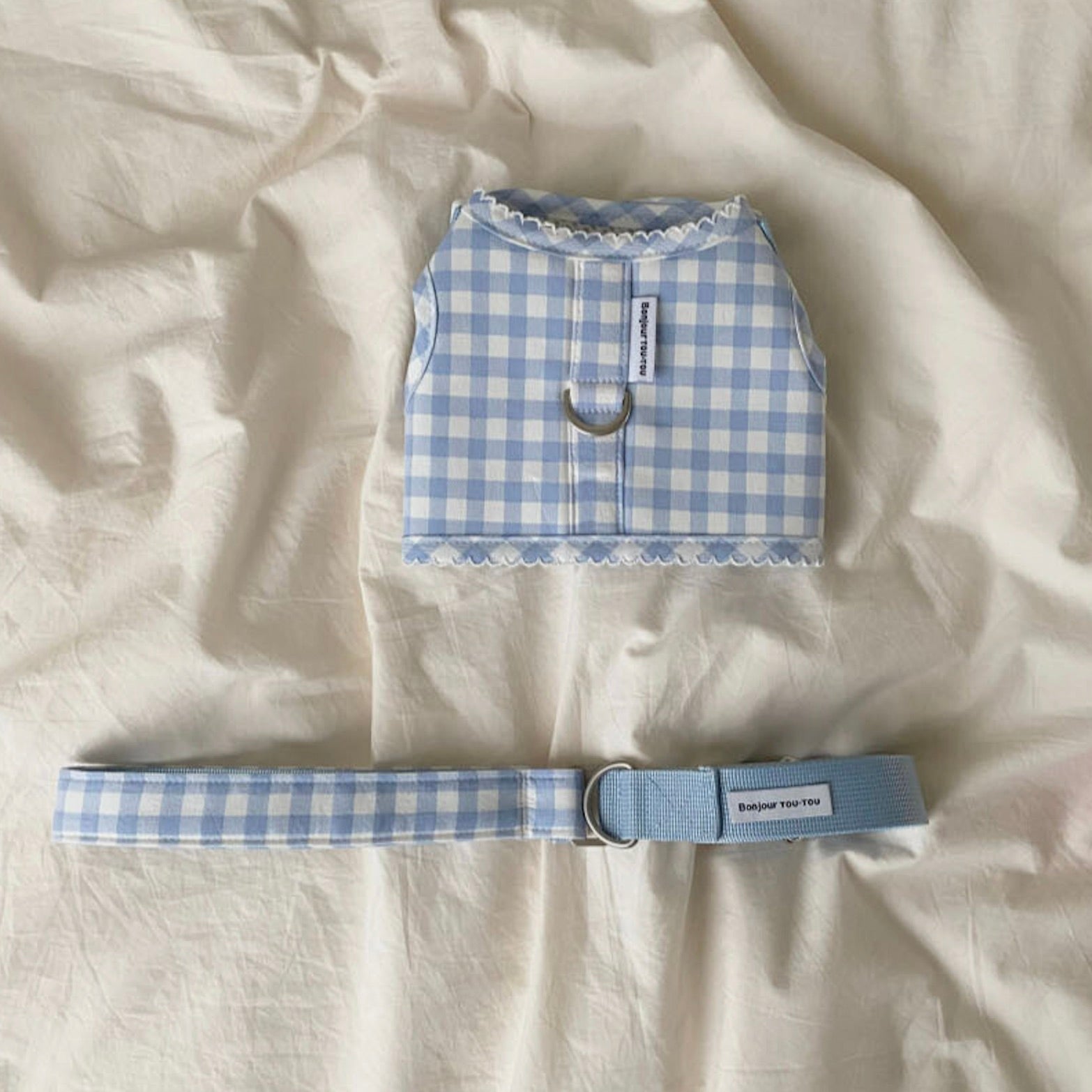 『ハートのアイレット刺繍が可愛いギンガムチェックハーネス』