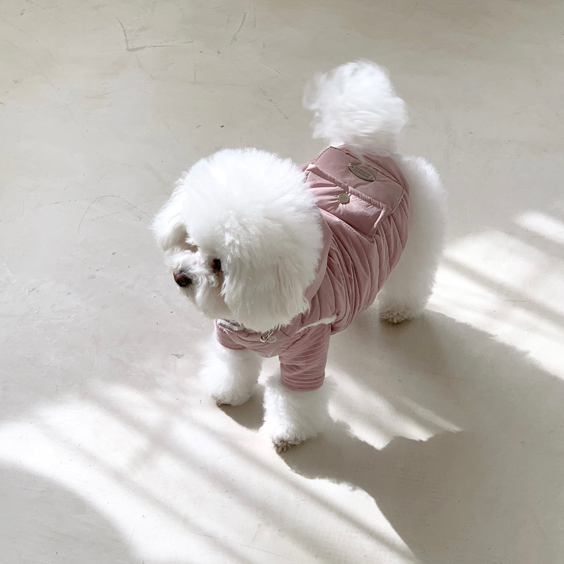 ファスナーは長毛の子の毛が挟まらないように、毛挟み防止ジップになっており、背中にはフードをしっかりと固定させるためのボタンもついており細やかな機能が盛りだくさん!