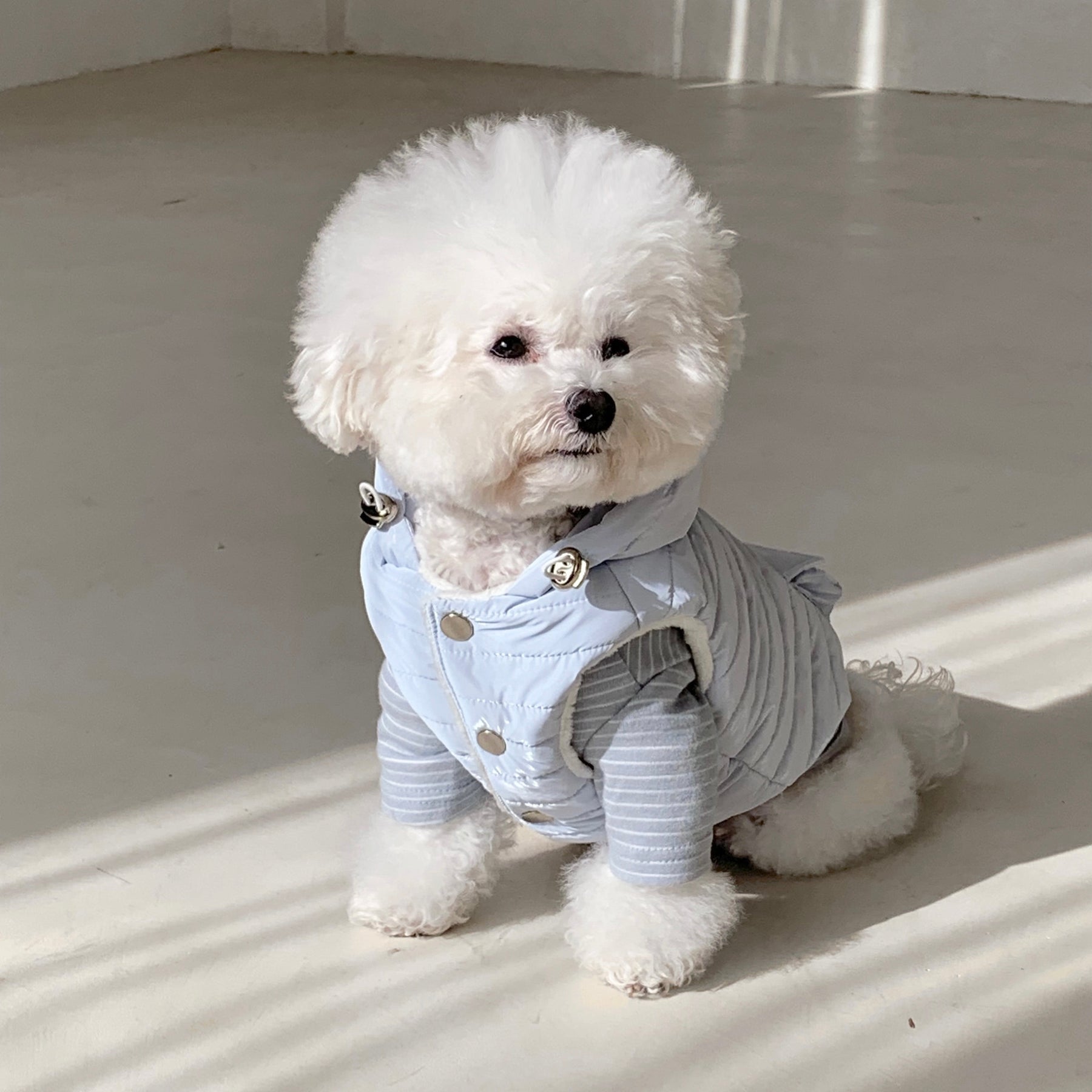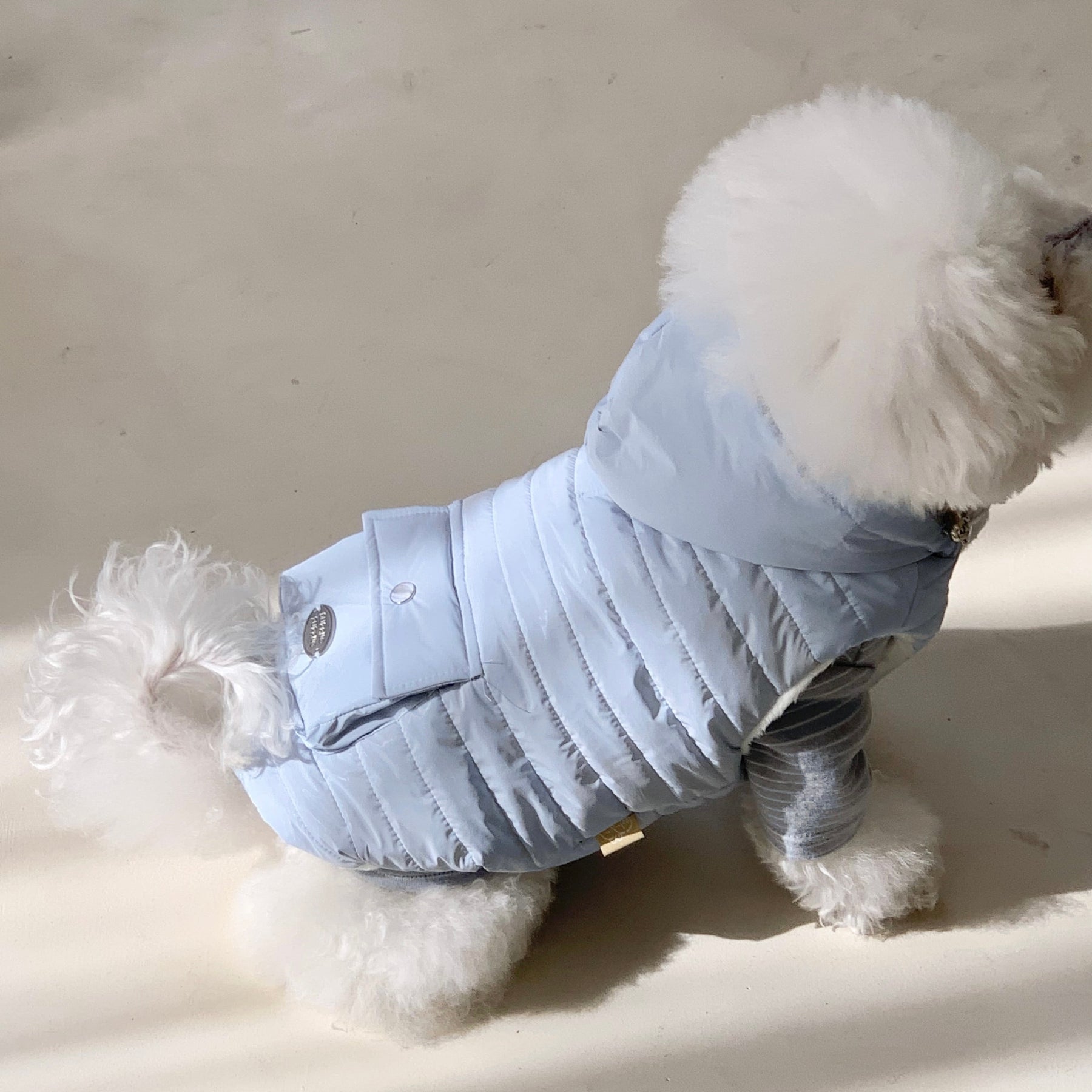 ファスナーは長毛の子の毛が挟まらないように、毛挟み防止ジップになっており、背中にはフードをしっかりと固定させるためのボタンもついており細やかな機能が盛りだくさん!