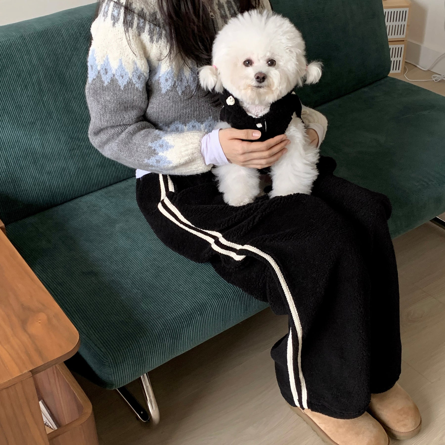 Duran Rurangのお揃いのできるオーナー用のお洋服で前回即完売してしまったトラックパンツの国産高級ボアフリース生地と暖かなフリース裏地で製作された軽くて暖かなボアバージョンが登場!